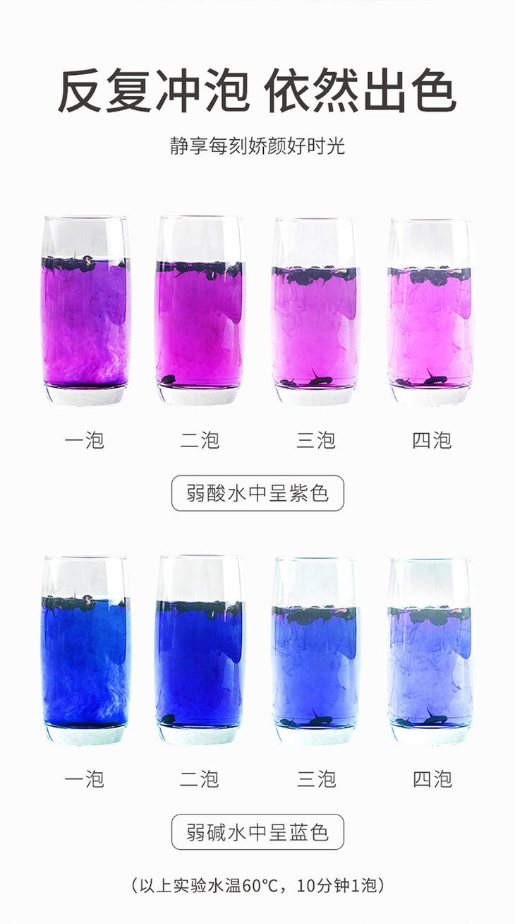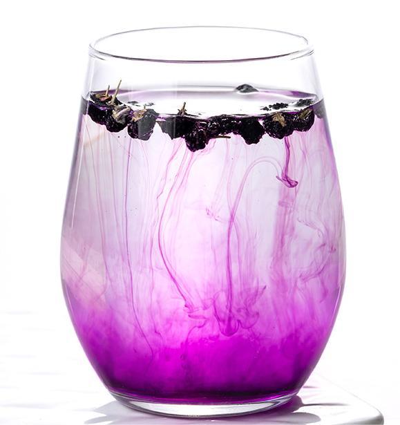 好品质的黑枸杞伴随水的酸碱度不同,跑出来的颜色各不相同。酸性柠檬水偏红,碱性水偏蓝,属于正常现象哦。