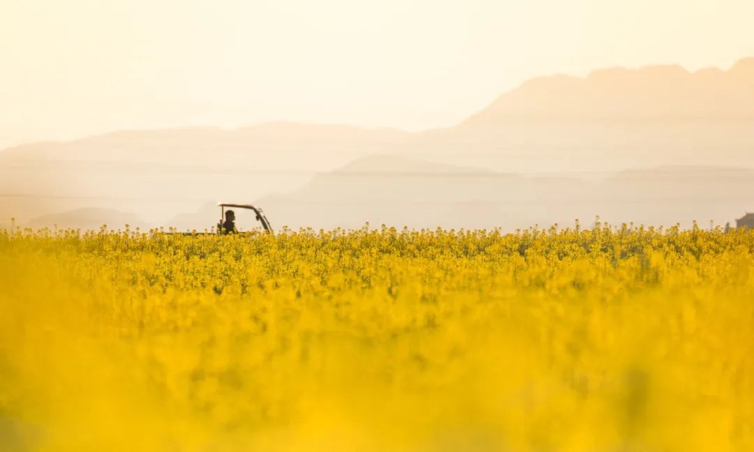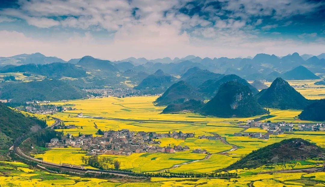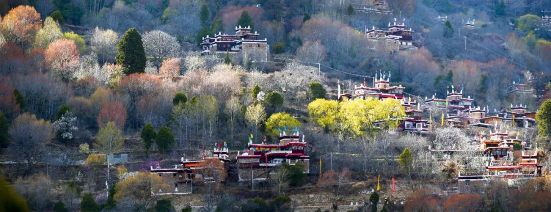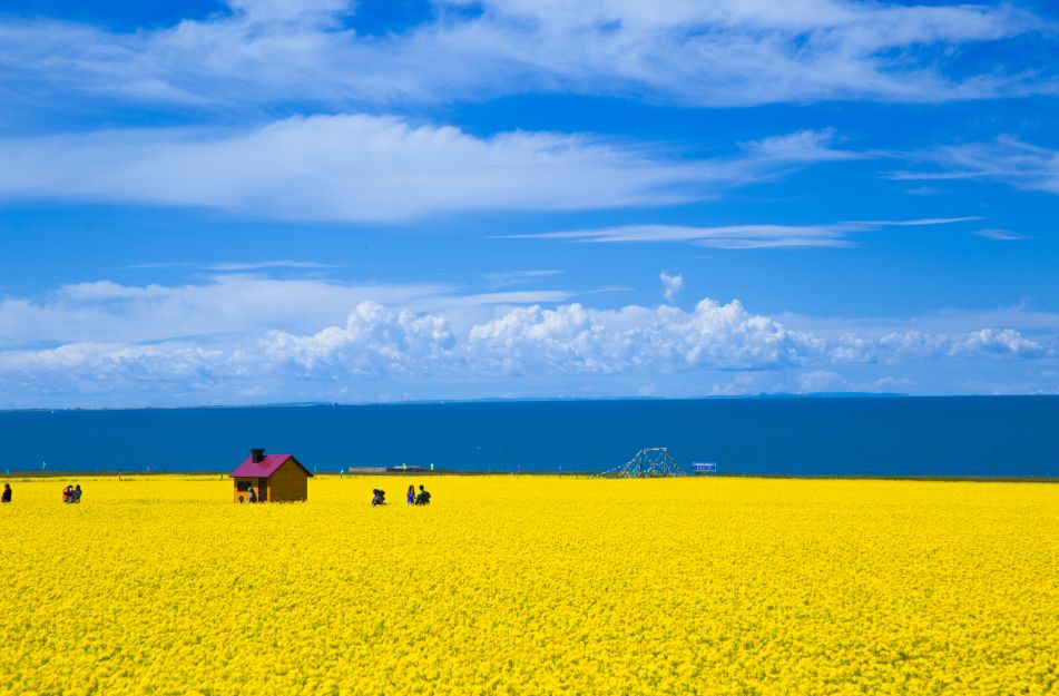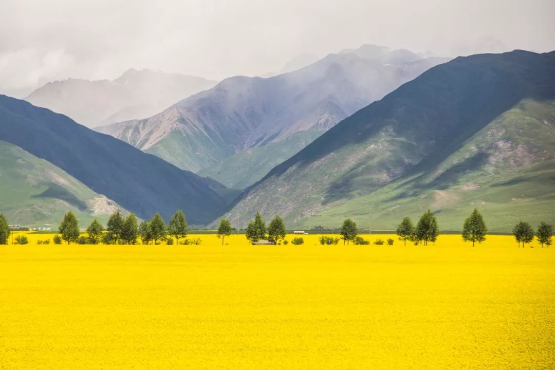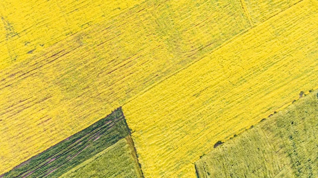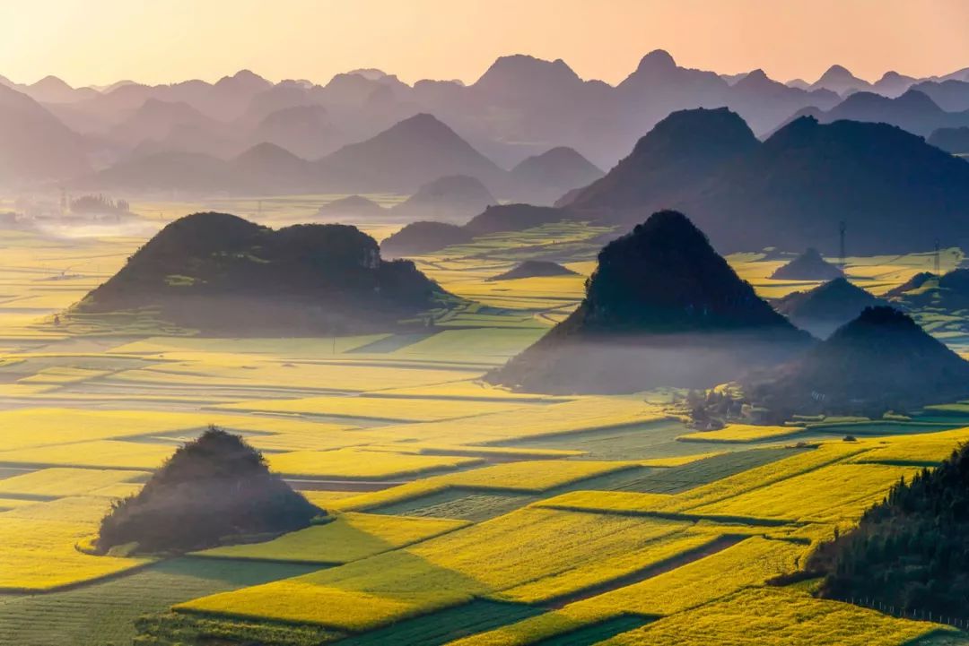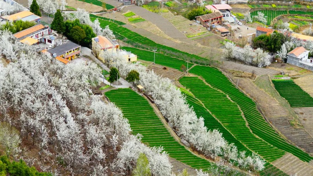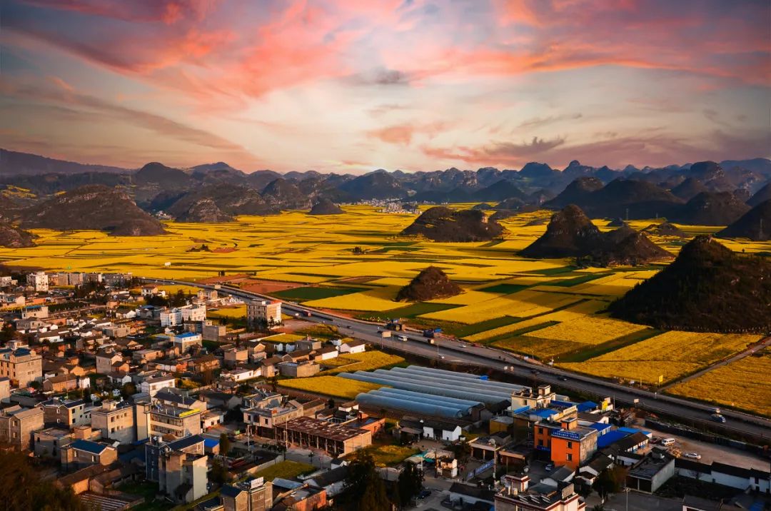 白墙黛瓦的徽派民居散落在一片金黄之间