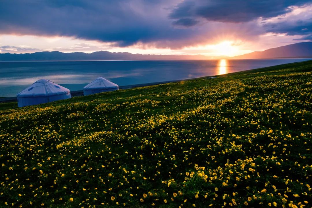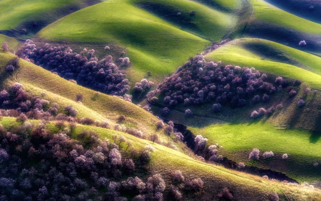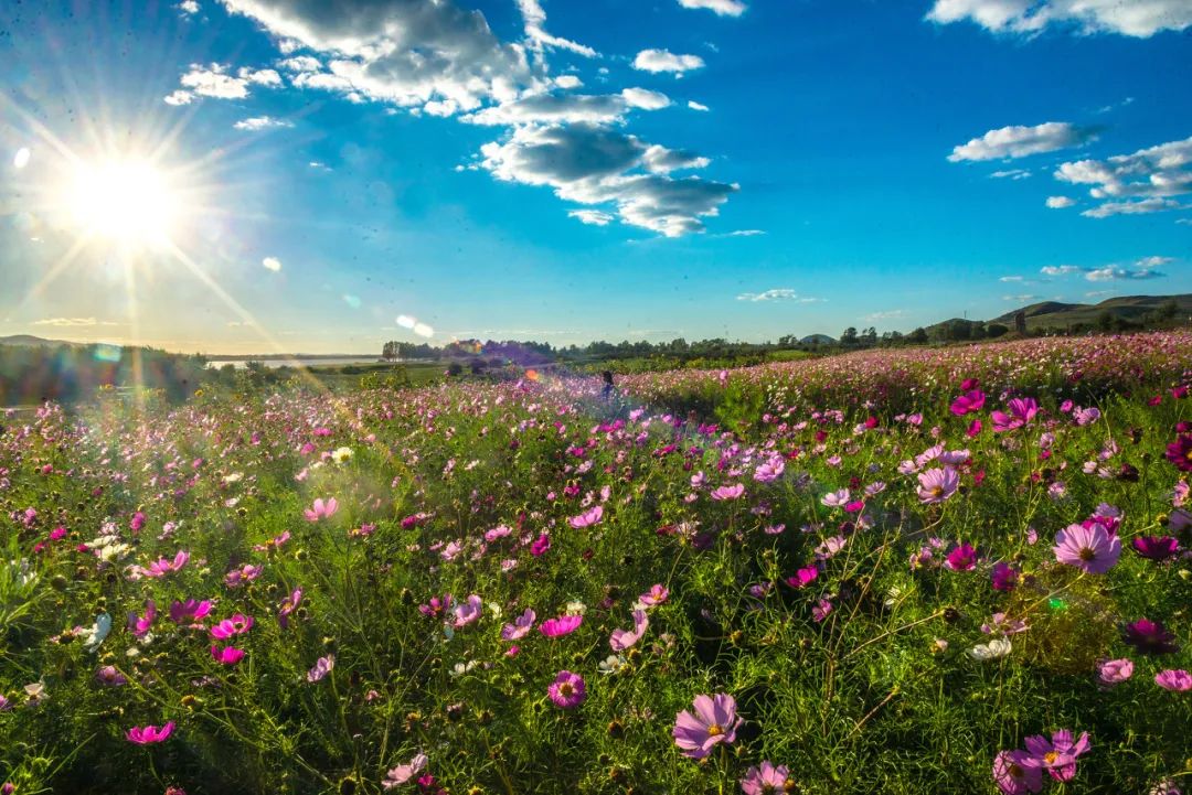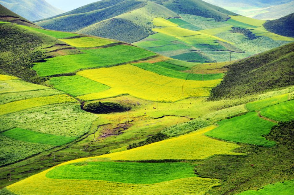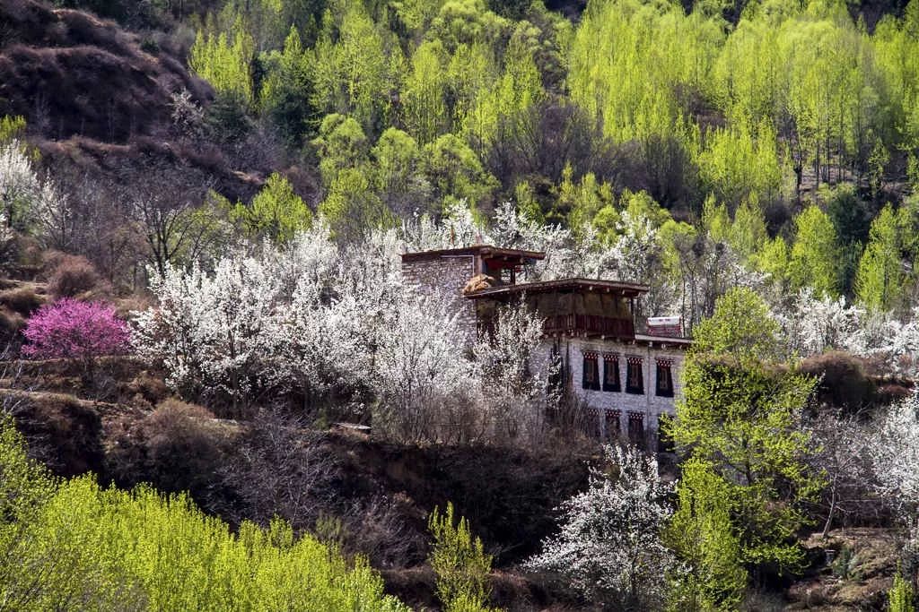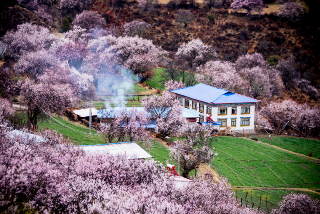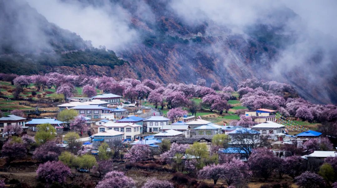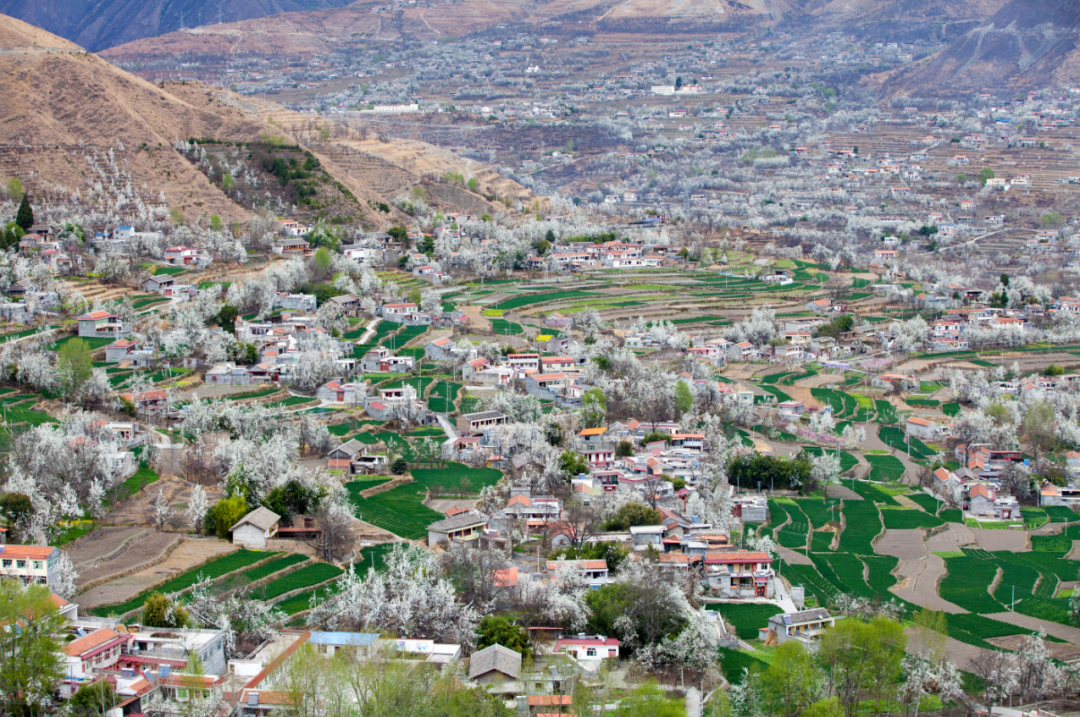 白墙黛瓦的徽派民居散落在一片金黄之间