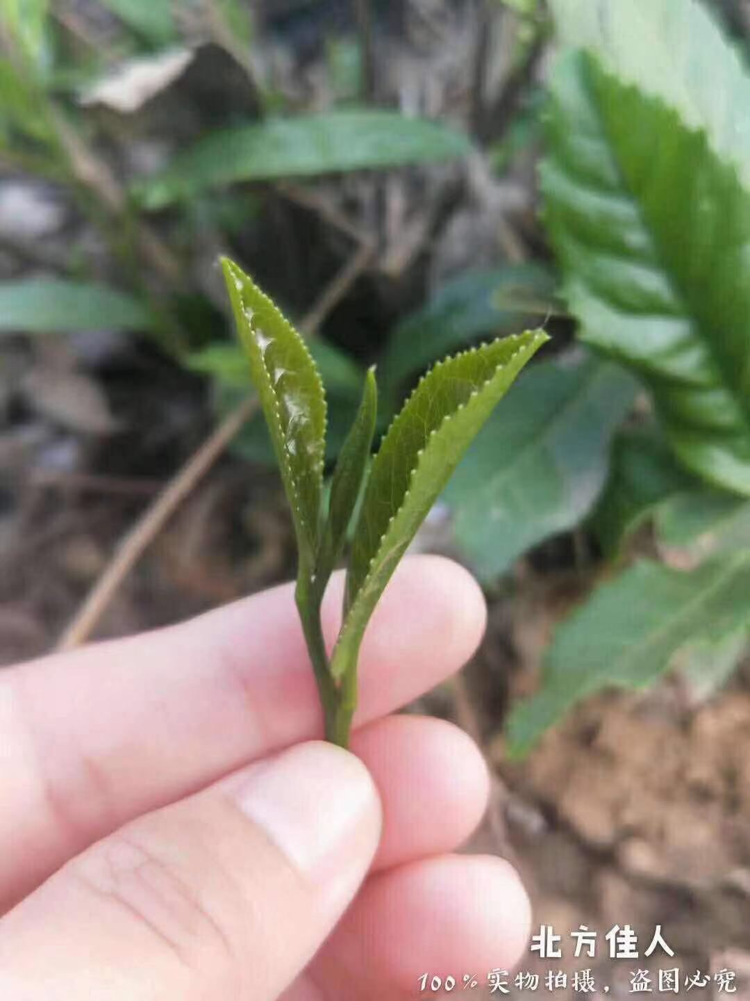 因冬季长、营养积累在根部、5月初北方春天到来、才冒芽、叶片特肥厚、北方茶叶片表面多了一层膜、这是独特的腊质层、是因寒冷气候导致茶树御寒而变异而成、特油亮如打腊的叶片、这样的叶片只有在台湾2600米左右的高山才见的到的、做出来的茶品滋味足、耐冲泡