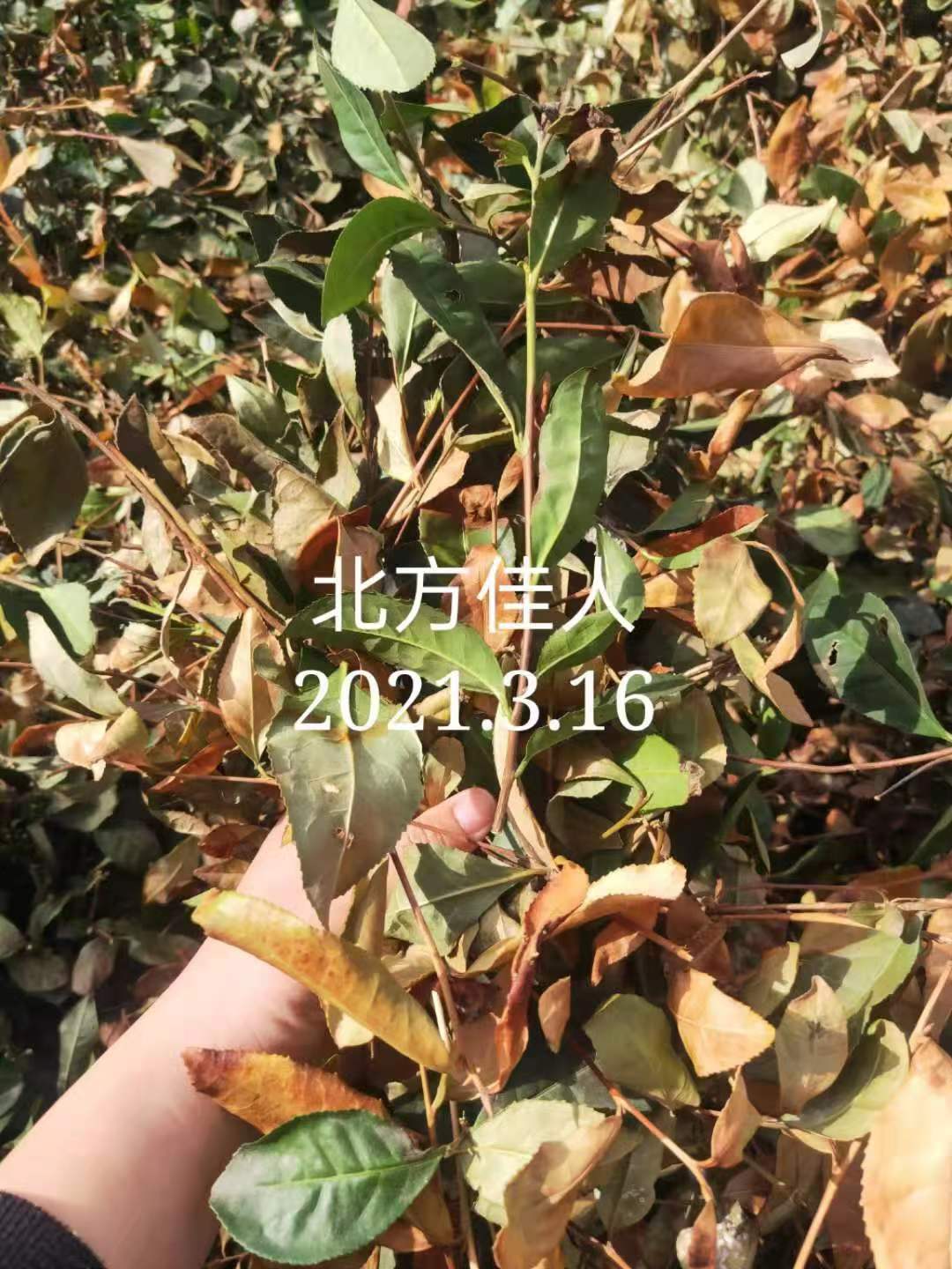 一会用放镜头、从去年9月底至今天的北方茶的视频及照片、看如何越冬、茶树、如何冻的结冰、零下十七度的低温持续一周以上、已经远超过正常茶树可以抗寒的极限(零下五度)、北方茶树坚强的辛苦越冬长达七个月