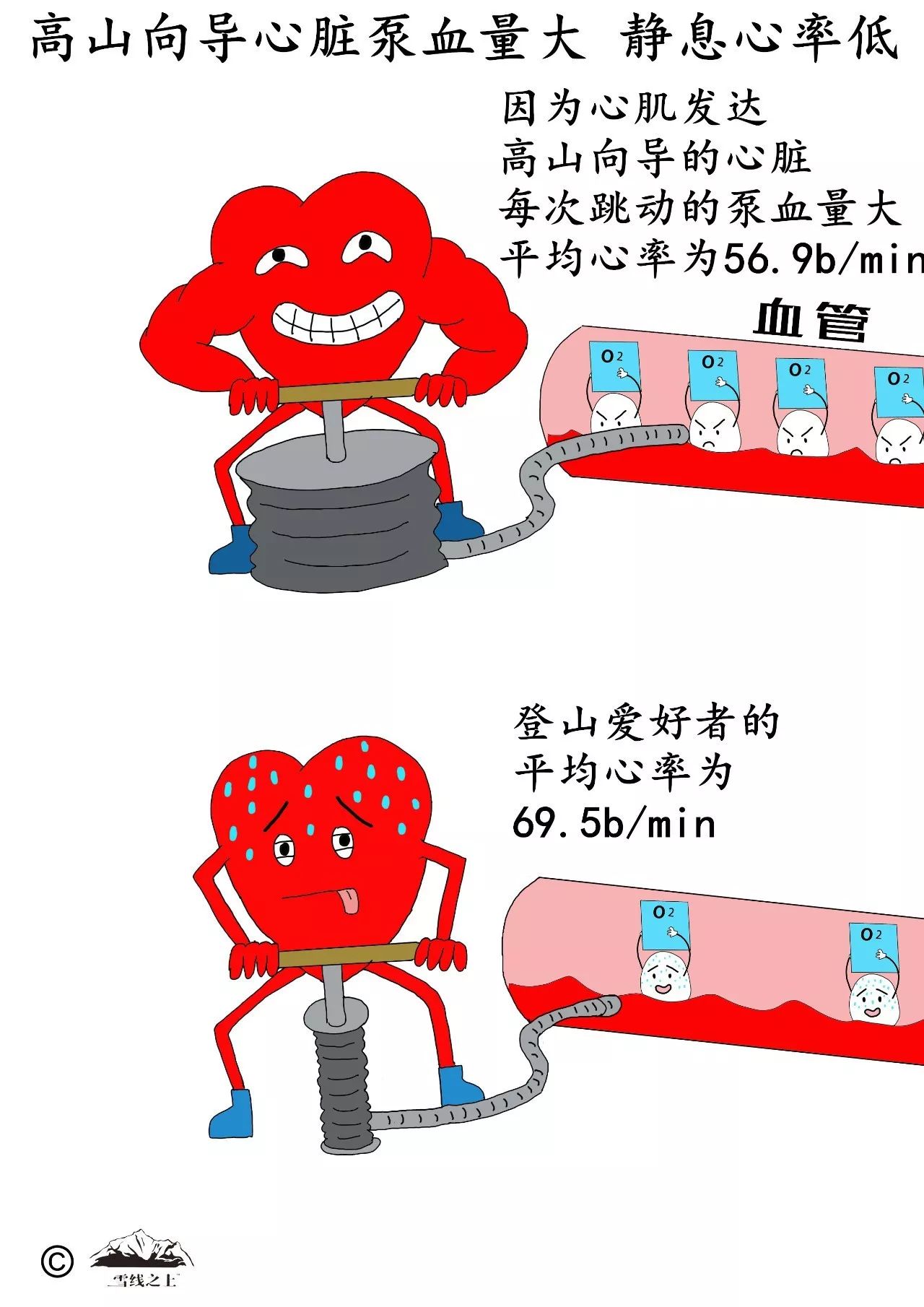 出现这种现象,是因为向导拥有一颗更强大的心脏。由于心肌发达,心脏每次跳动的泵血量大,能够输送更多的血液供给身体。