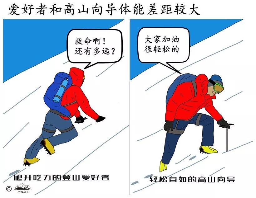 爱好者与高山向导之间存在体能差距,从一则小故事,我们可以更直观的感受到这种差距。