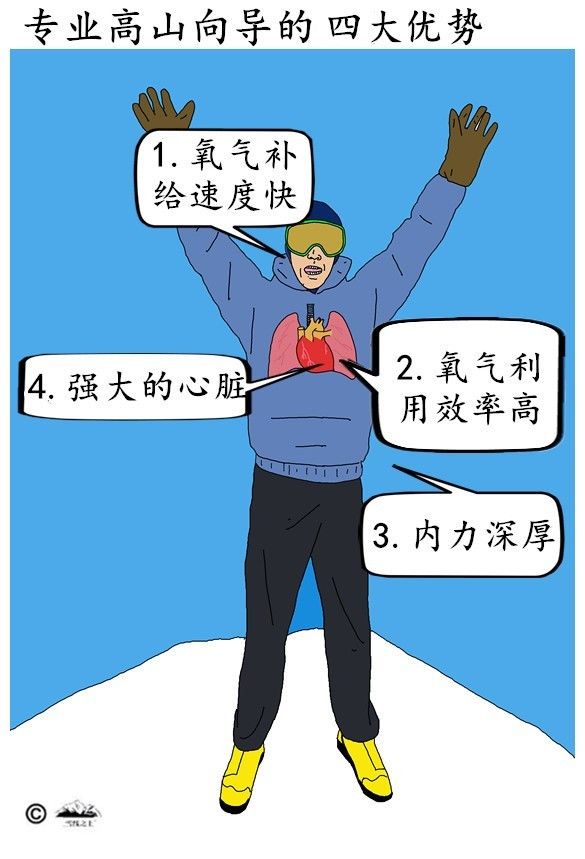 也就是说,也许你吸入的氧气也很多,但高山向导们不仅吸入多,每一丝氧气还都在发挥作用。
