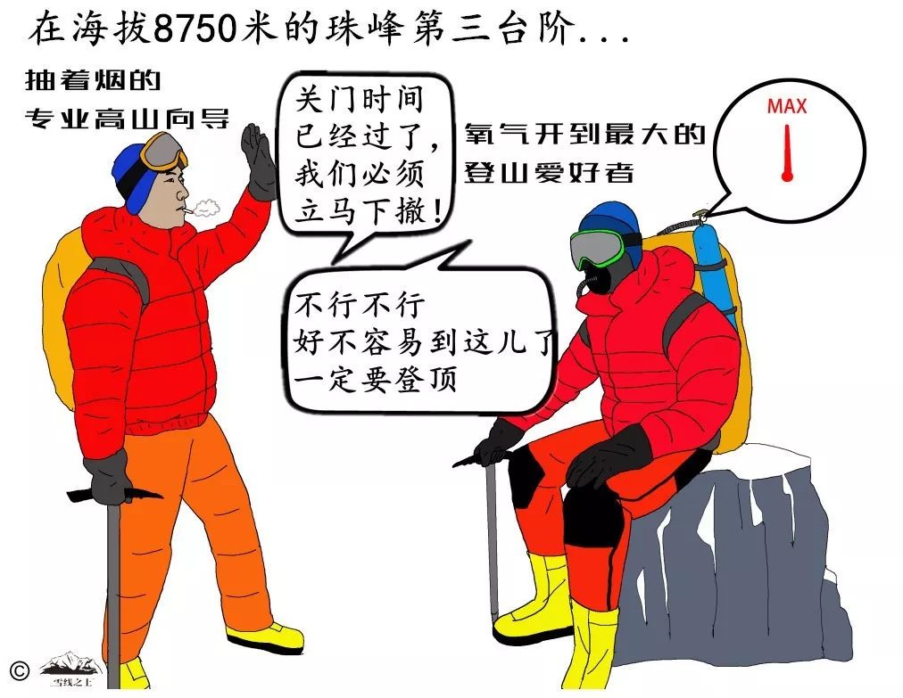 海拔8750米的珠峰第三台阶顶部,空气稀薄地带正在进行一场严肃的谈判…没人再说话,双方保持沉默。