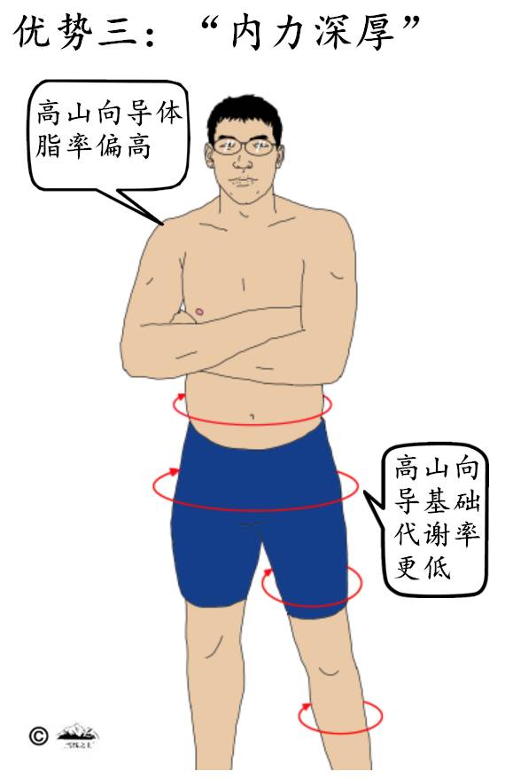 高山向导们之所以不容易累,是因为身体“内力深厚”,也就是体脂率高但是基础代谢率低。
