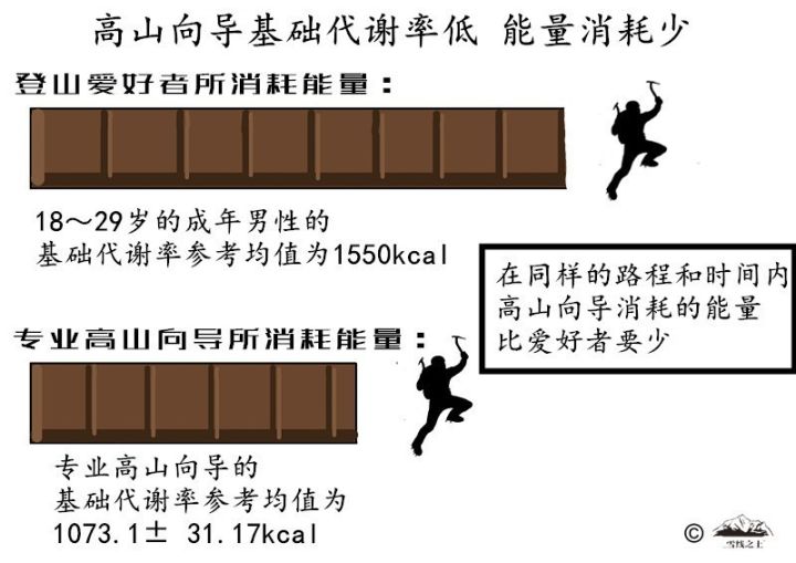 而花钱较慢,则是指高山向导的身体在单位时间内消耗的能量更少,较低的基础代谢率能防止体力在高海拔地区过快地消耗。