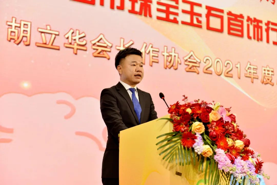 胡立华会长指出,去年,协会主动配合市委、市政府开展防疫等各项工作;积极向党委政府建言献策,反映行业心声;坚持以一流党建引领一流事业发展,真抓实干,推进党建工作迈上新台阶;成功举办四会市首届玉石原料交流会,高质量承办“2021中国珠宝玉石首饰行业协会翡翠文化产业发展年会”,顺利举办“2021年玉石雕刻作品华表奖评选”以及2021年“玉博杯”珠宝玉石首饰镶嵌设计大赛,好评如潮,得到了各级领导、社会、同行的一致赞扬;组织玉雕精品代表四会展团亮相第十七届中国(深圳)国际文化产业博览交易会,不断提升“四会玉器”品牌美誉度;始终坚持服务会员、规范行业、发展产业为宗旨,多措并举,为会员排忧解难,全力推动玉器产业健康发展。