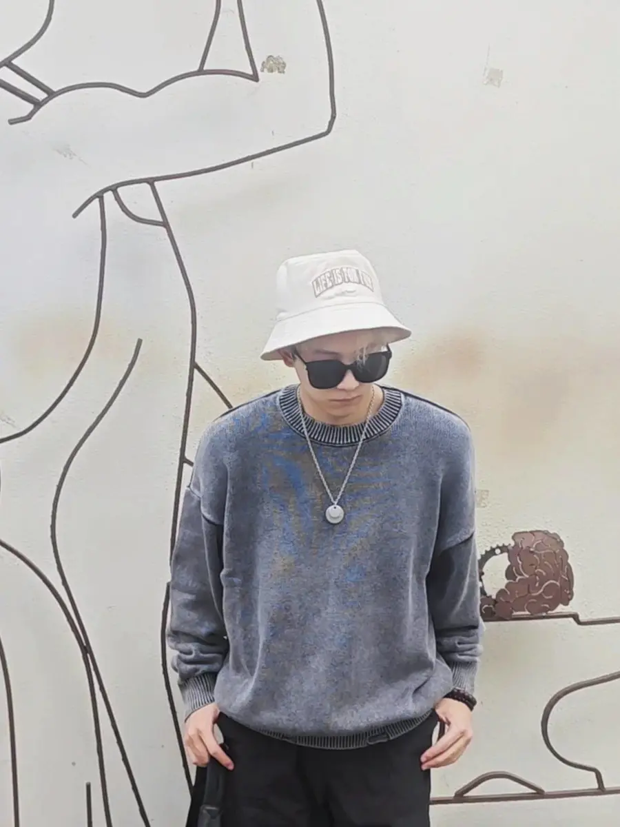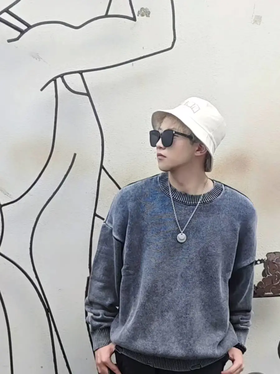慵懒outfits🎙️复古破坏水洗灰毛衣