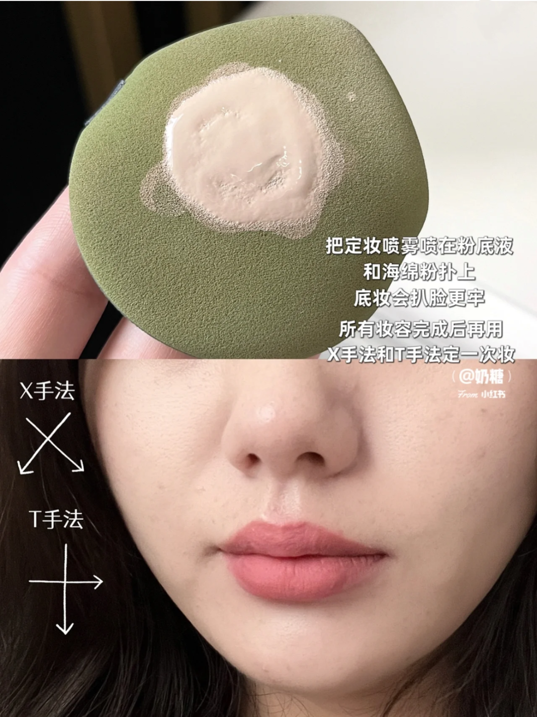 如果想要底妆牢牢扒在脸上,可以试试这个方法: