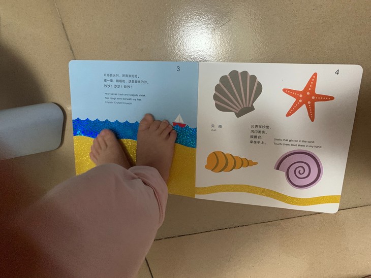 注意,这些所有的体验都很真实,小小手去触碰,沙滩,贝壳……都是真实的触感。