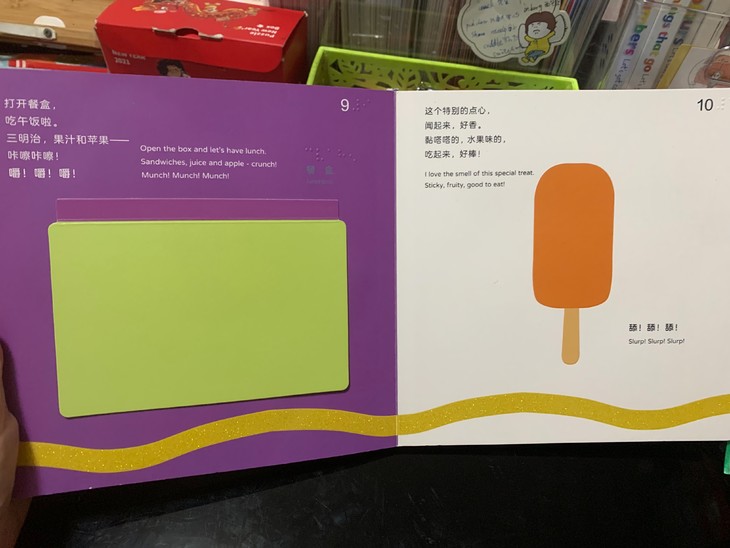 《触感启智玩具书》冰棒,是真的闻起来有香气的,忍不住就要舔一口了!