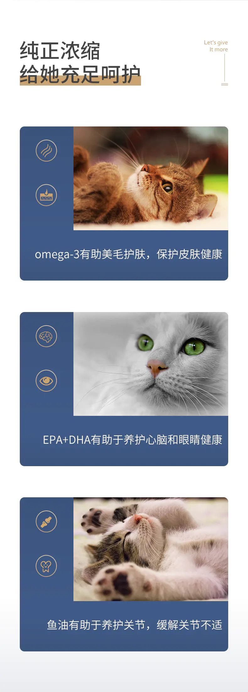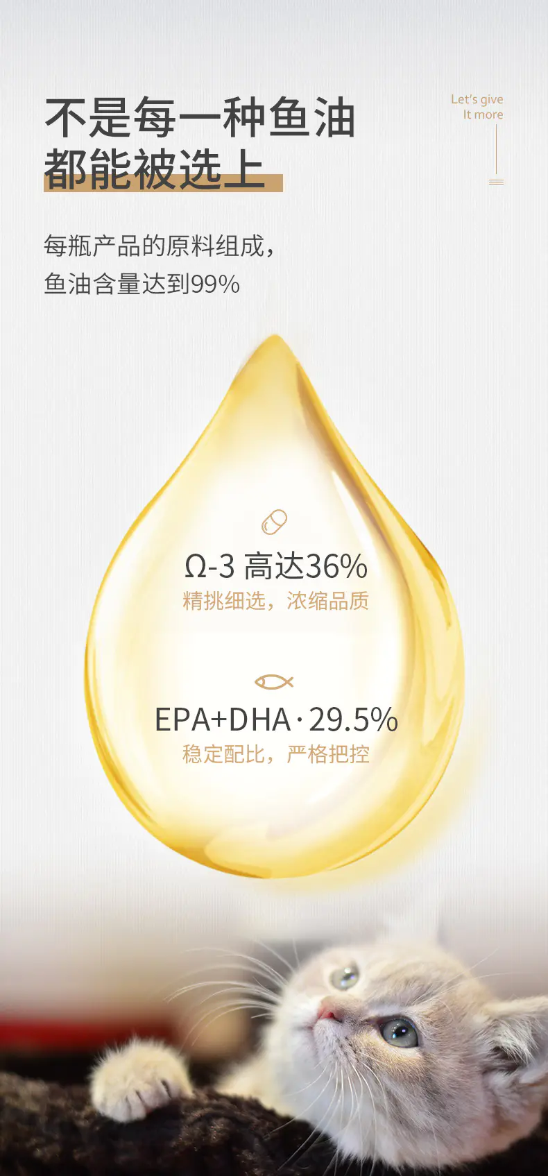 浓缩Ω-3,达到36%,养护关节,帮助美毛护肤。