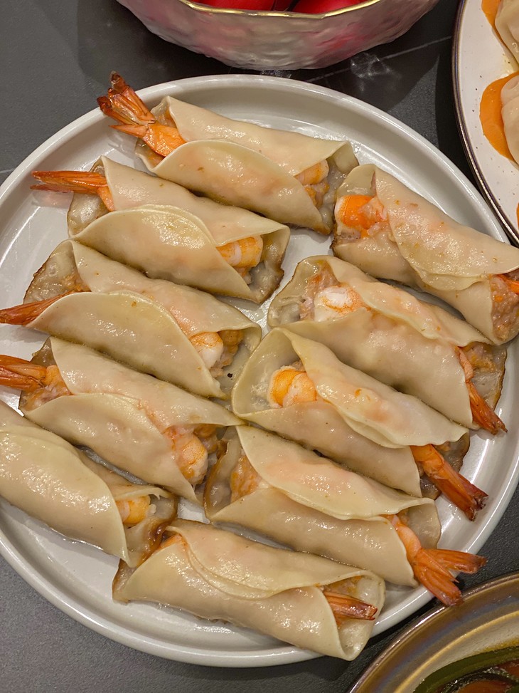 鲜虾、猪肉、胡萝卜、饺子皮、柠檬