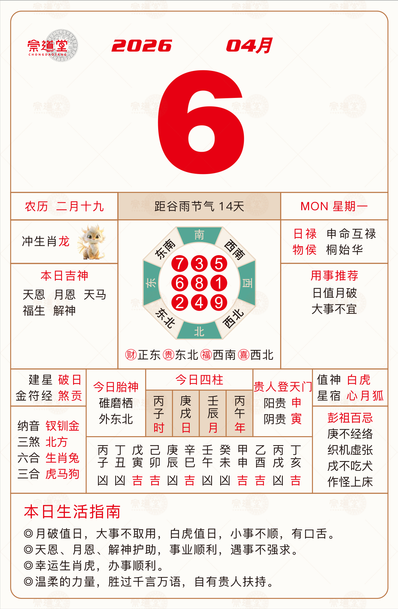 2026年4月13日 农历二月廿六 丁巳日 冲猪