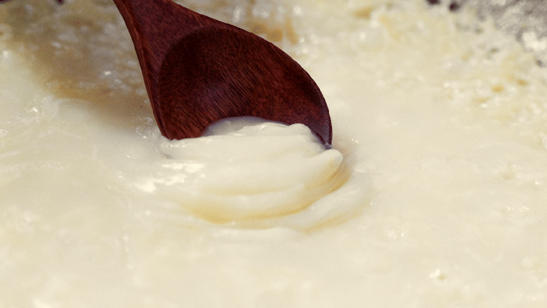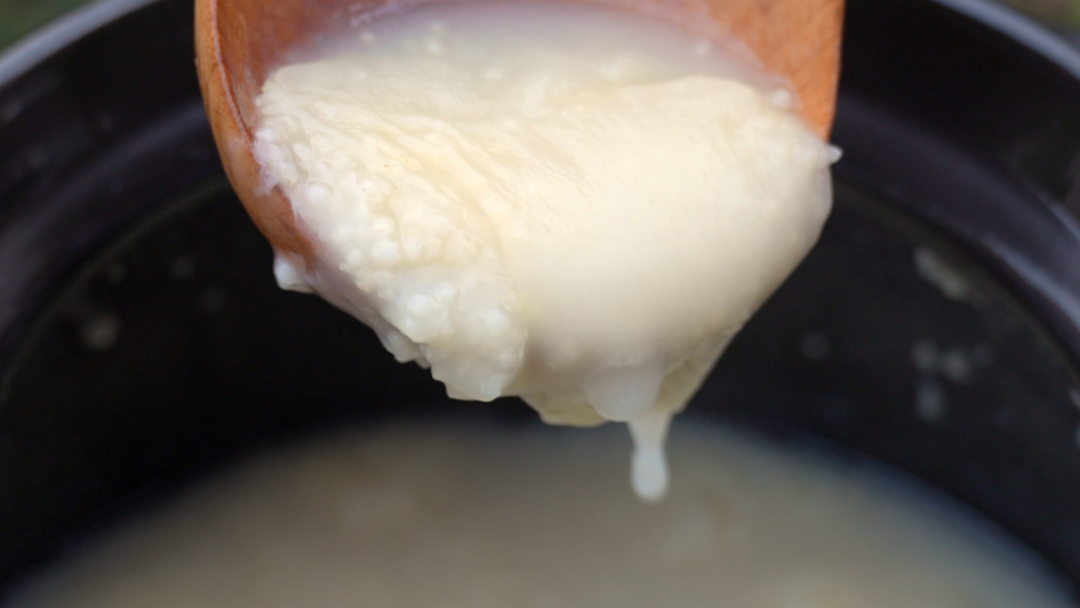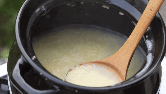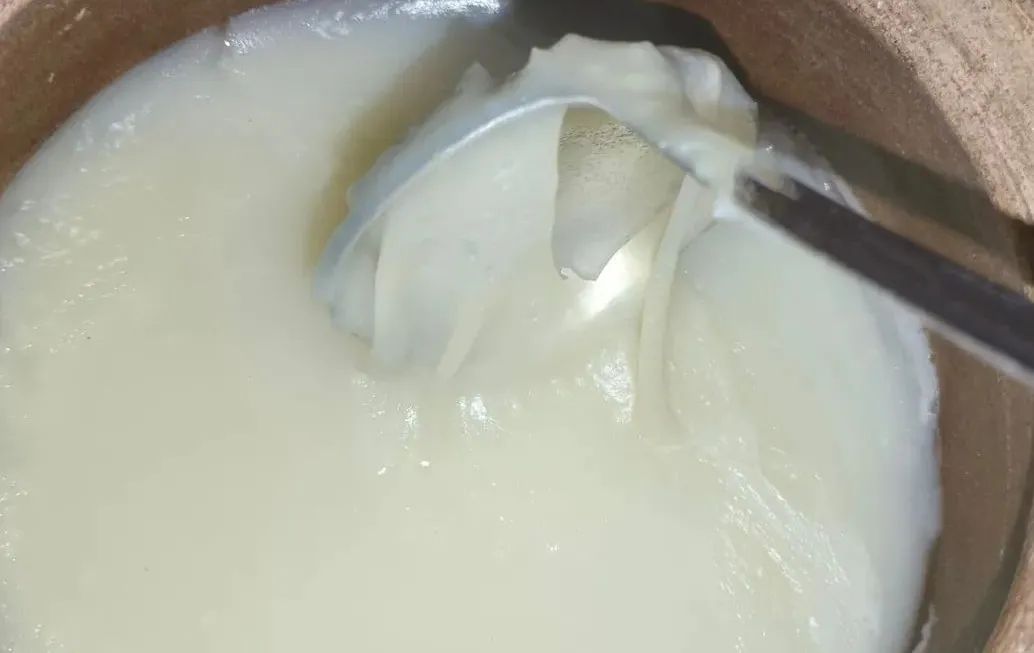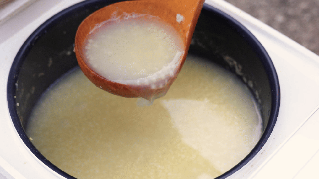 ✔ 小技巧:煮粥最后5分钟打开盖子搅拌,开盖让粥持续沸腾,这样能让米粒和汤水充分融合,粥的颜色会更鲜亮。关火后常温静置一段时间,米油就会凝结出来,只是比较薄。