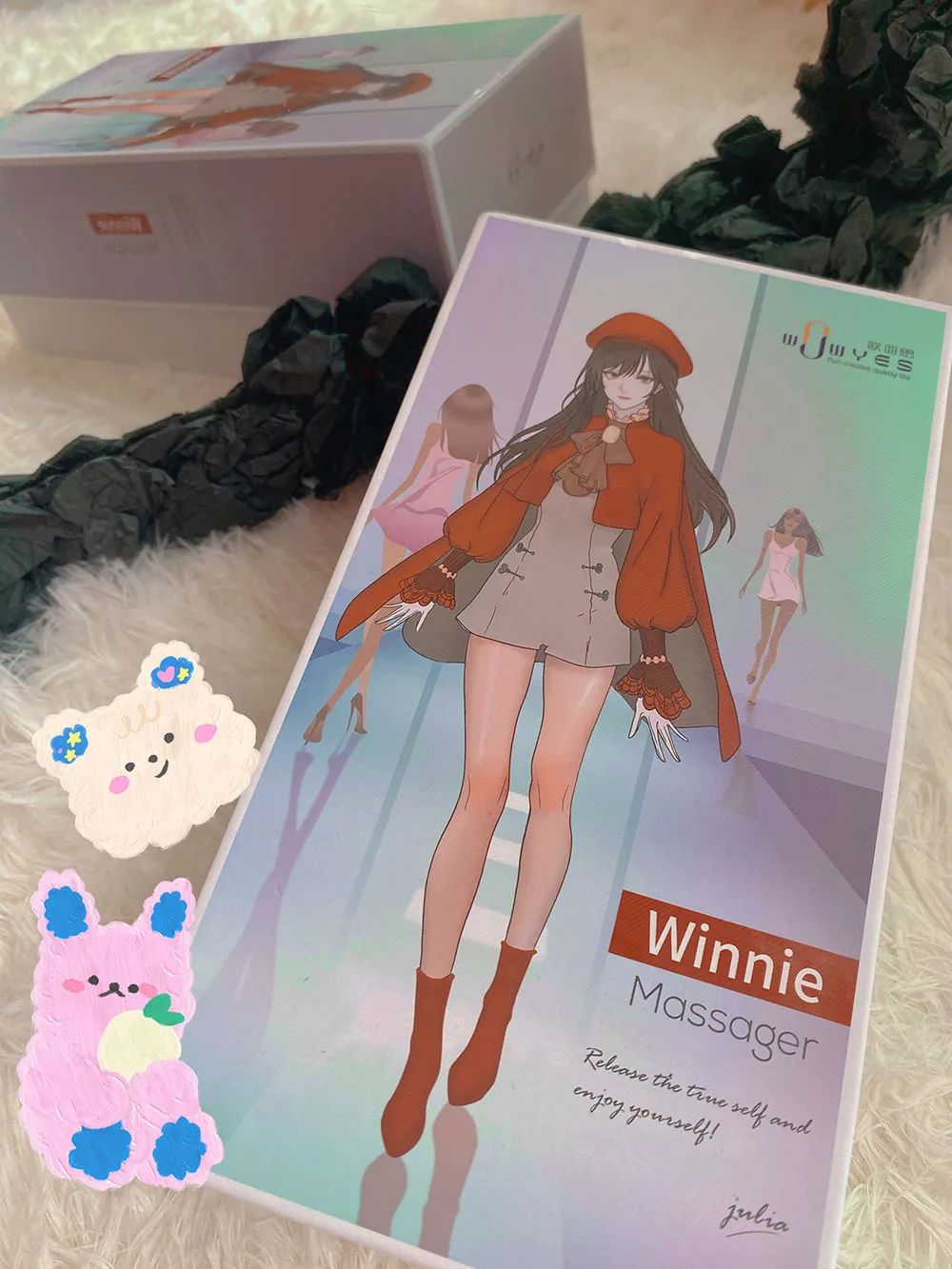 外包装很不错!质感满满~包装盒不像大多数产品的成熟性感风,而是换成了卡通图案,更加赏心悦目~