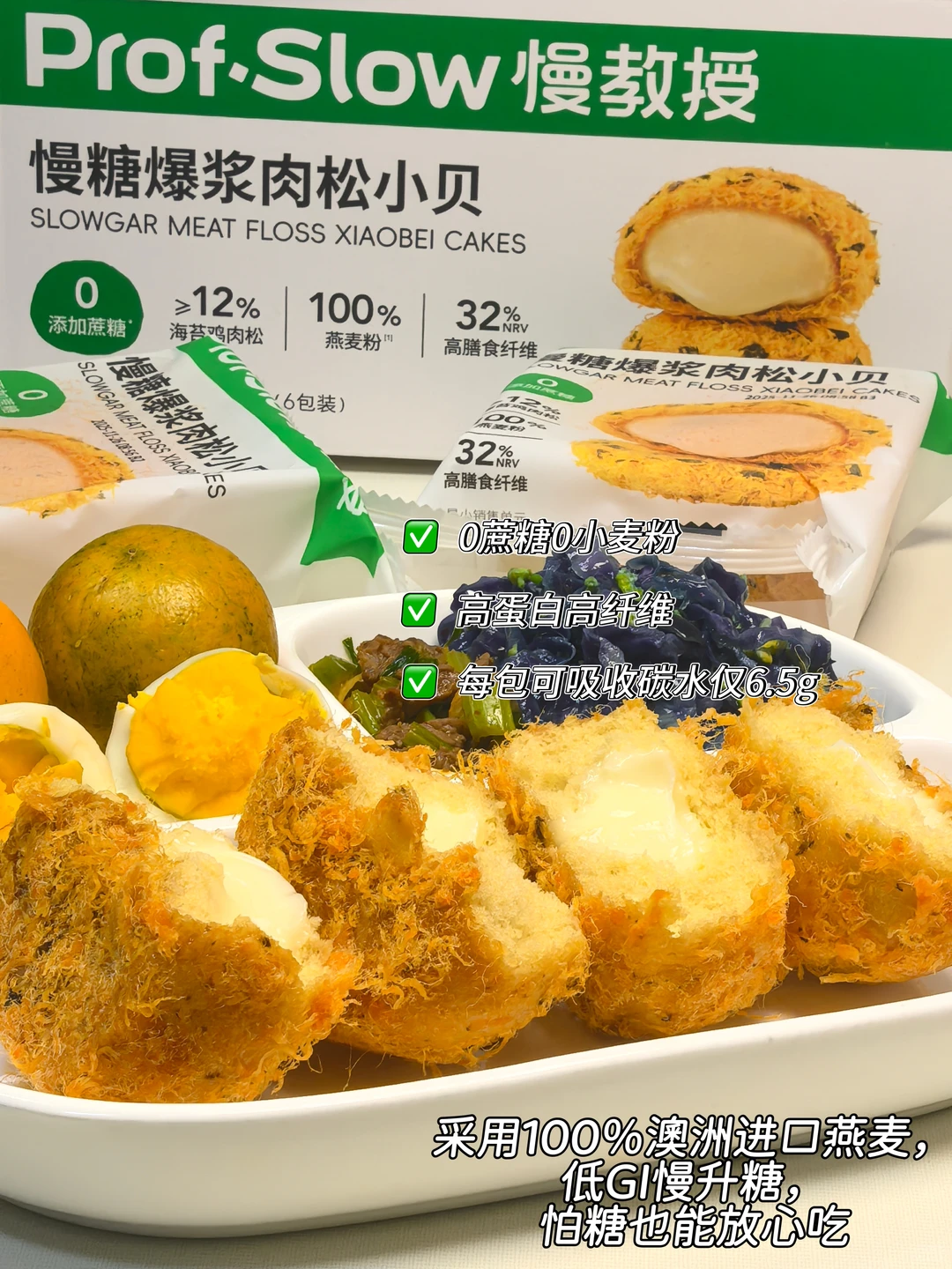🥳控糖减脂期千万别错过!营养又美味的#慢糖爆浆肉松小贝
