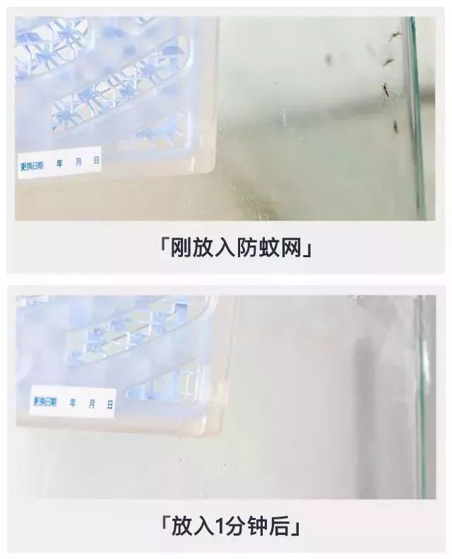 放入防蚊网后,不到1分钟气味散开之后,蚊子迅速四散而逃。