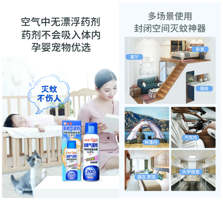 而金鸟防蚊网不同的是驱蚊不杀蚊,它采用拟除虫菊酯类药剂。