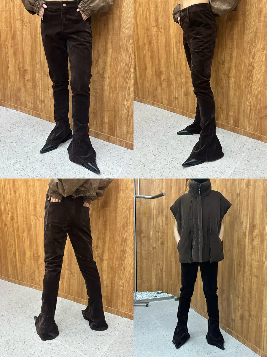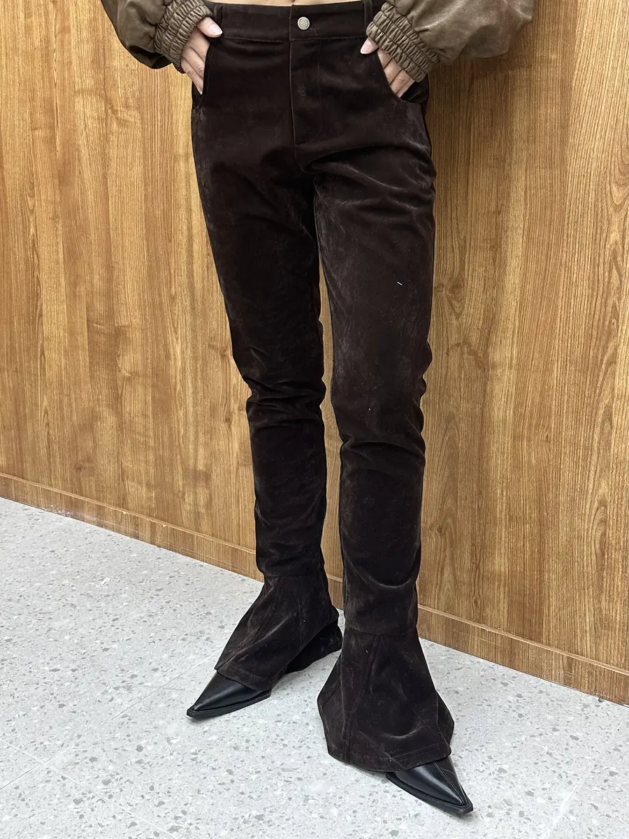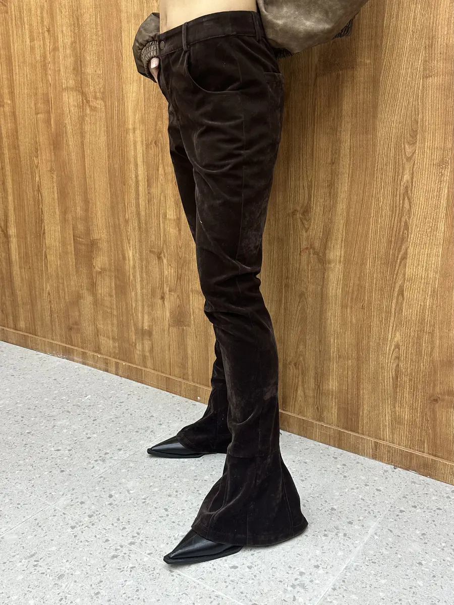 不喜直线马蹄绒微喇休闲裤