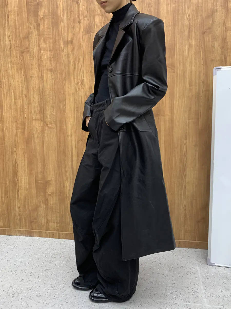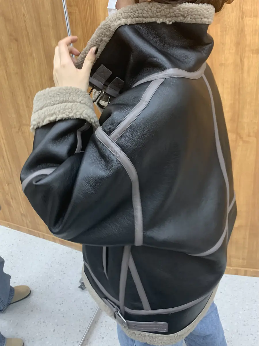 日常实录宽松长款皮衣外套