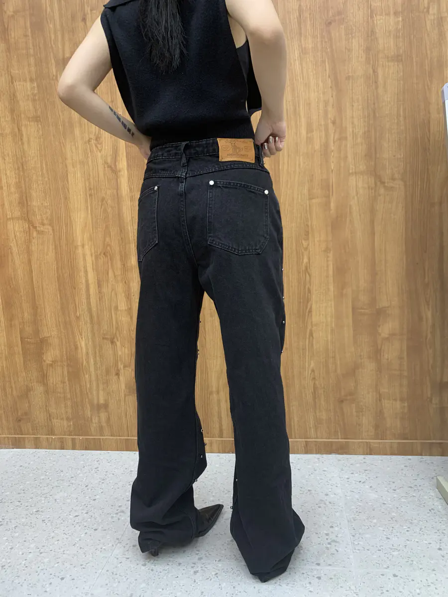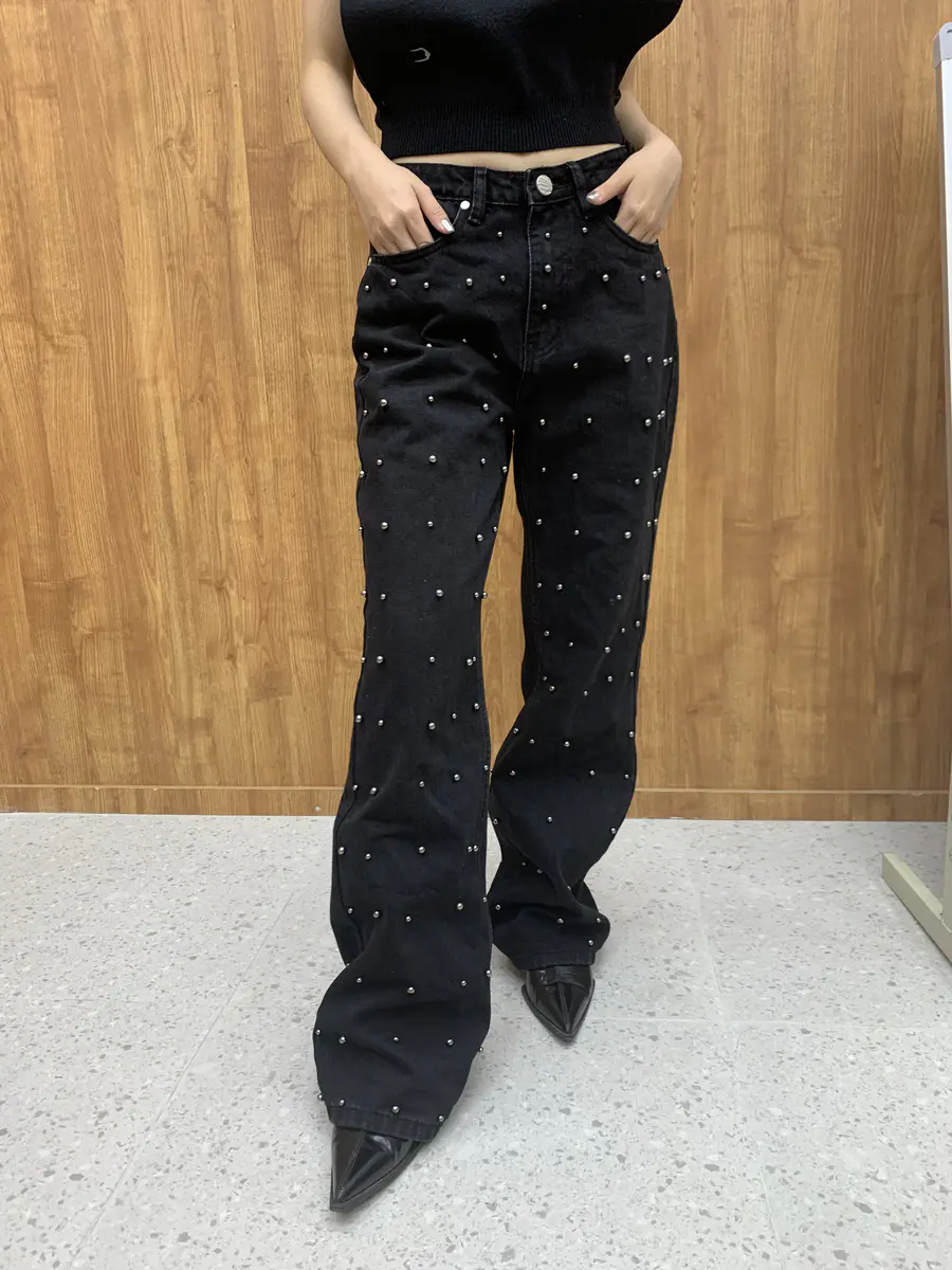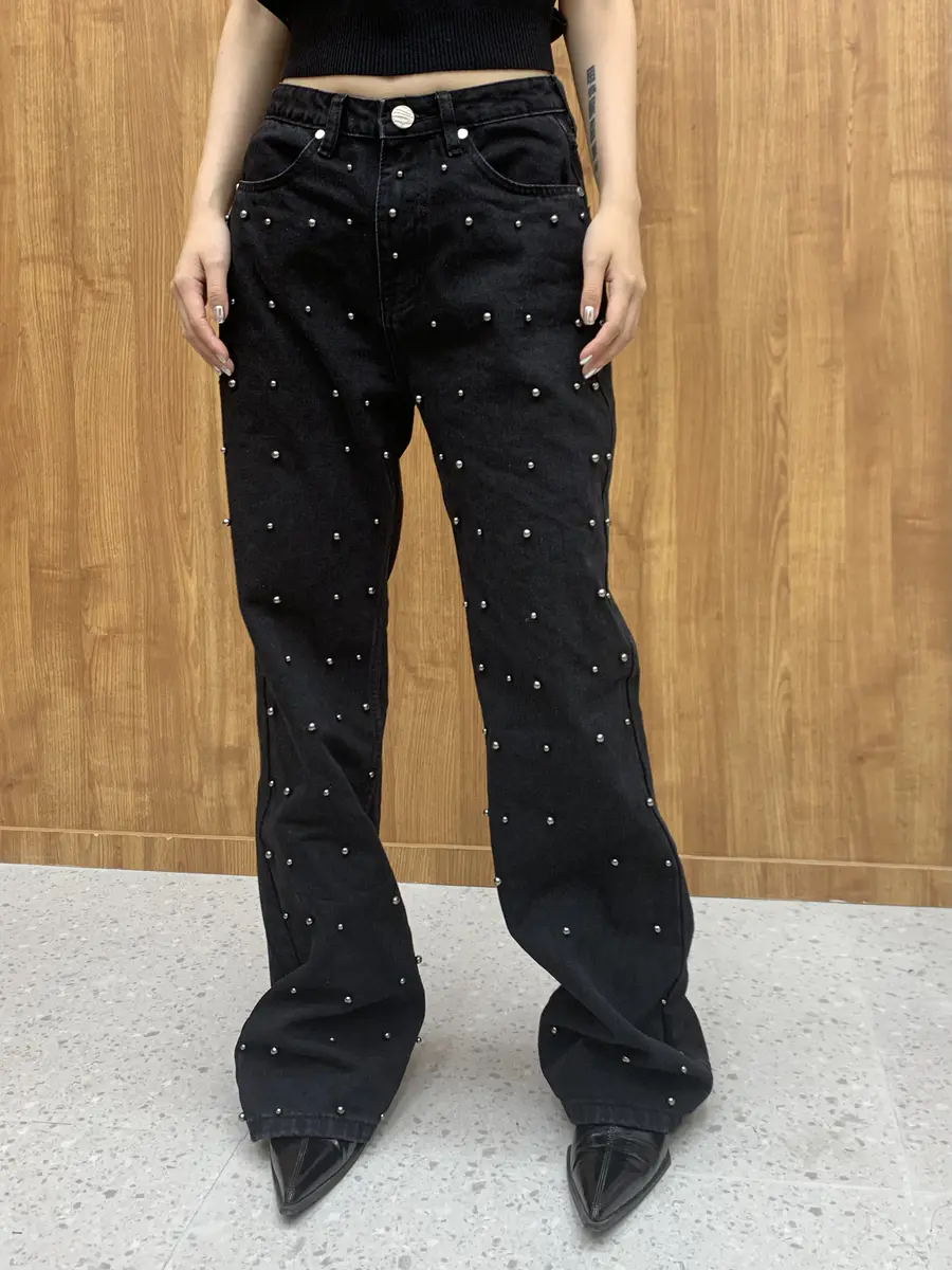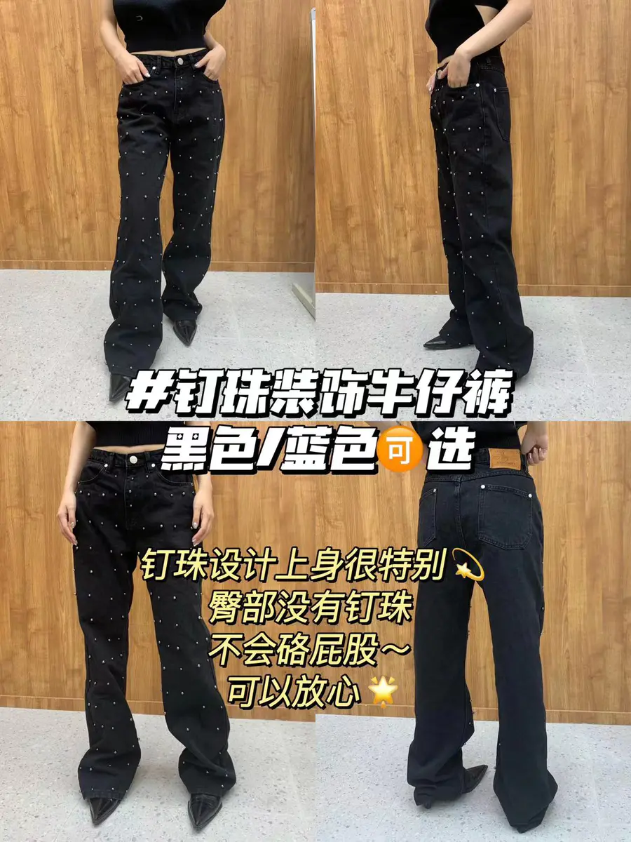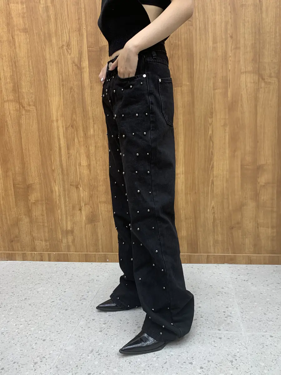 钉珠阔腿牛仔裤蓝/黑可选