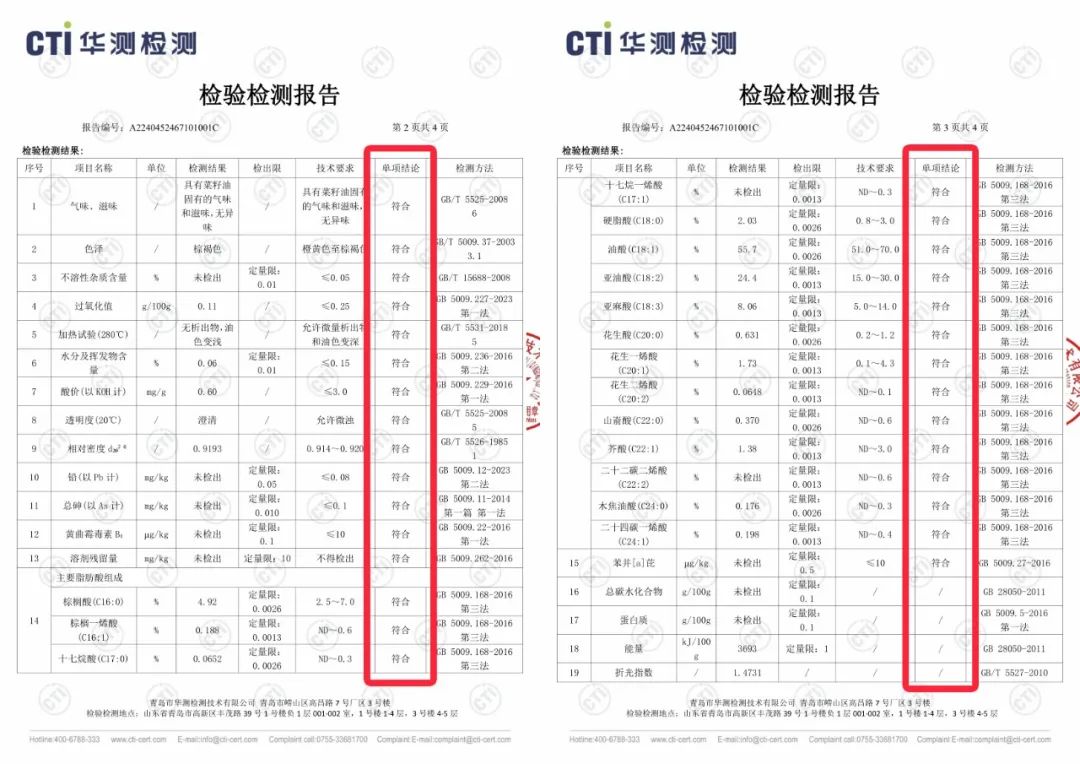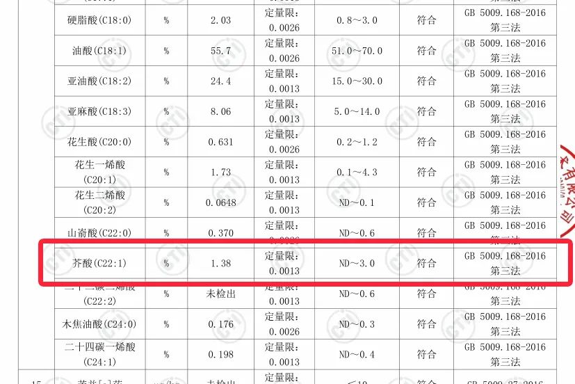 我们将产品拿到专业机构做过成分检测,可以看到是检测结果芥酸≤3%,符合“低芥酸”标准!