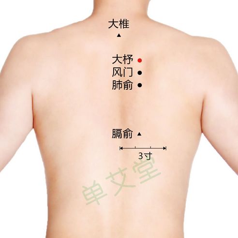 肺俞穴位置:在背部,当第3胸椎棘突下,旁开1.5寸。