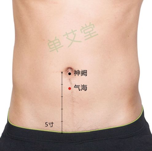 神阙穴位置:在腹中部,脐中央。