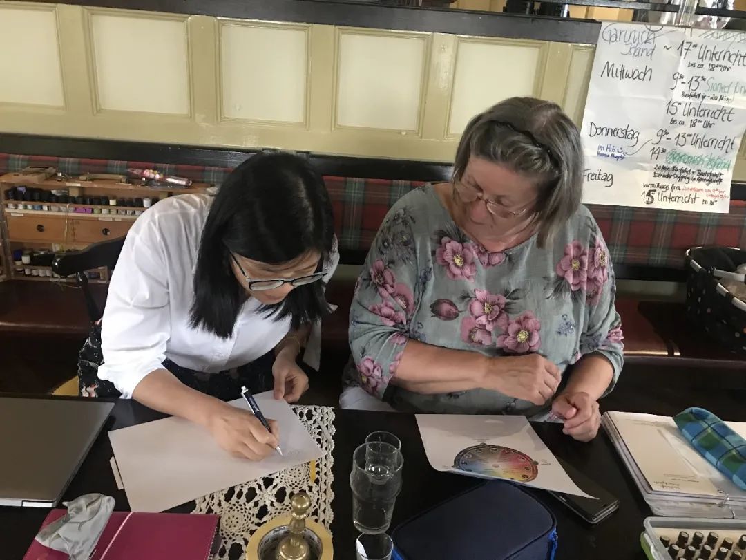 Zimmermann老师是生物化学系毕业,对于精油化学研究颇深。我关于“成分、气味和功效三者一体”的专题有很多灵感都来自于她多年收集和记录的资料。而她的学生Christine Lamontain除了在她这里学习芳疗之外,还跟着另外一位老师Martin Henglein学习了芳香心理学,并把自己最感兴趣的芳香心理学作为自己的事业,在东部城市Jena开始把自己学到的内容落地,开展了多年实践,在身心整合方面帮助了很多人,并且注册了一个Duftgespräch------Duft und Psyche im Dialog(香气语言------香气与心灵的对话)的商标,在老师Martin Henglein的基础上,把自己的实践经验加进去,形成了一套自己的体系。