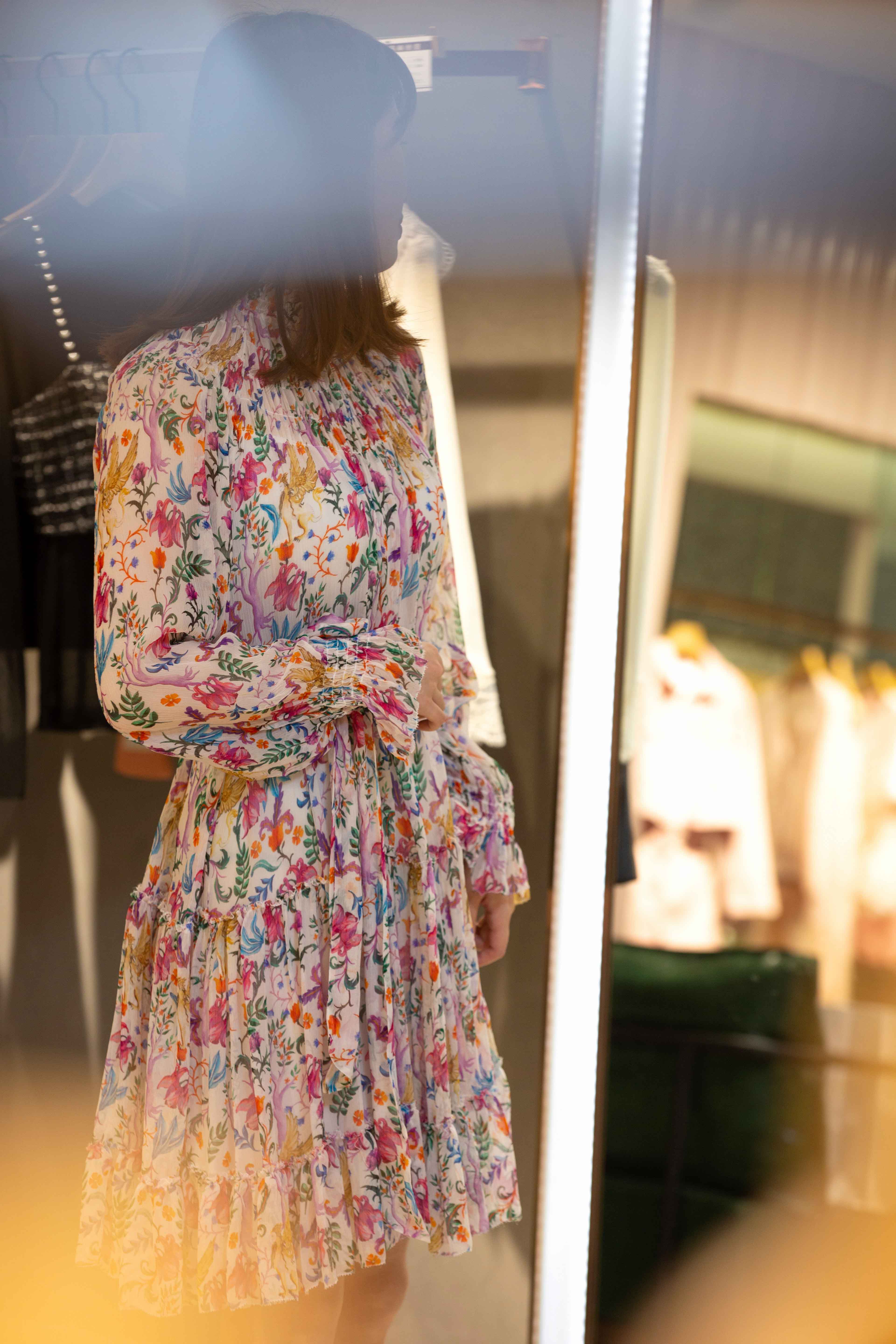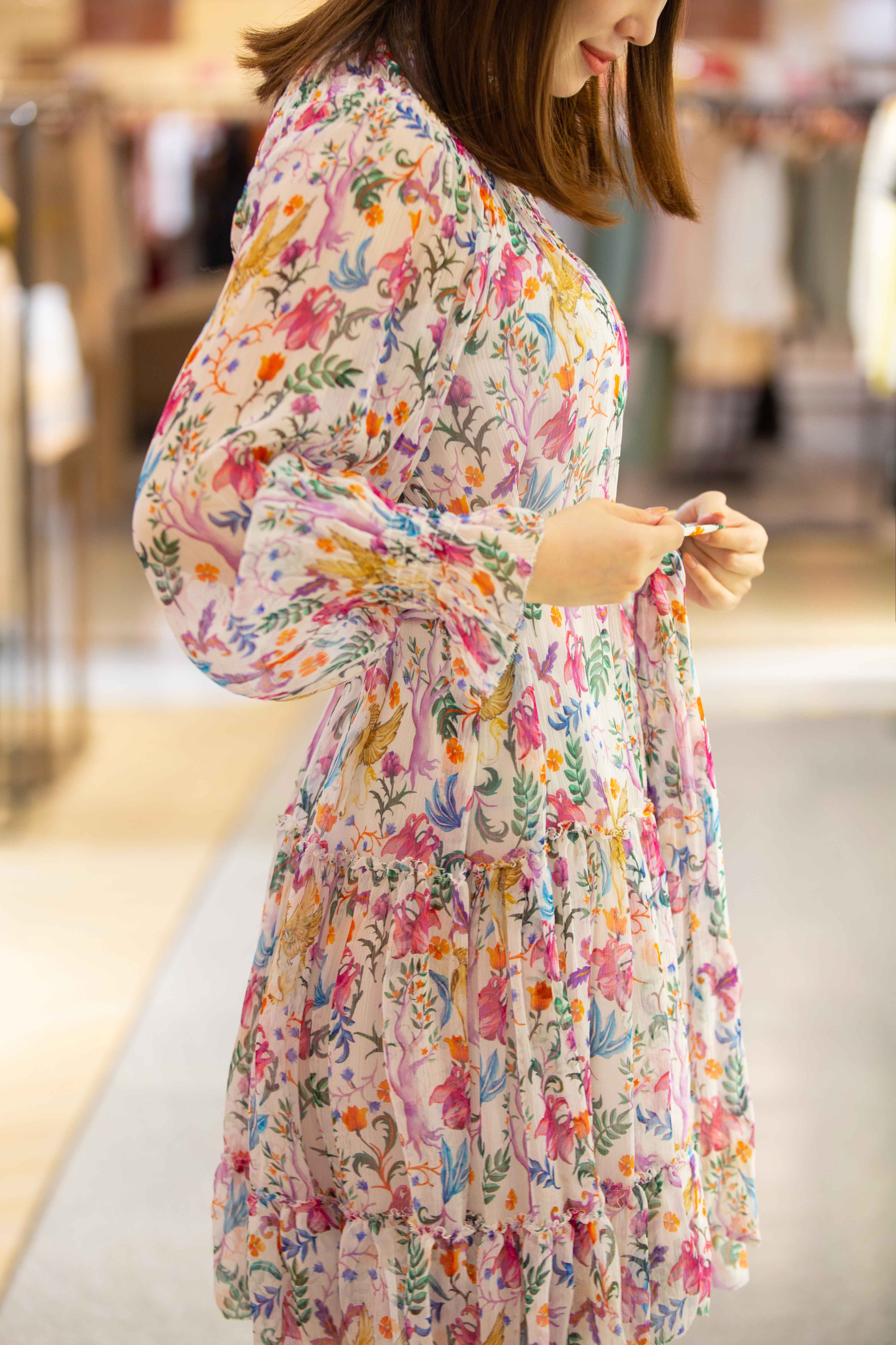 图2是桑蚕丝的一套长裙,面料舒服透气,随风飘逸