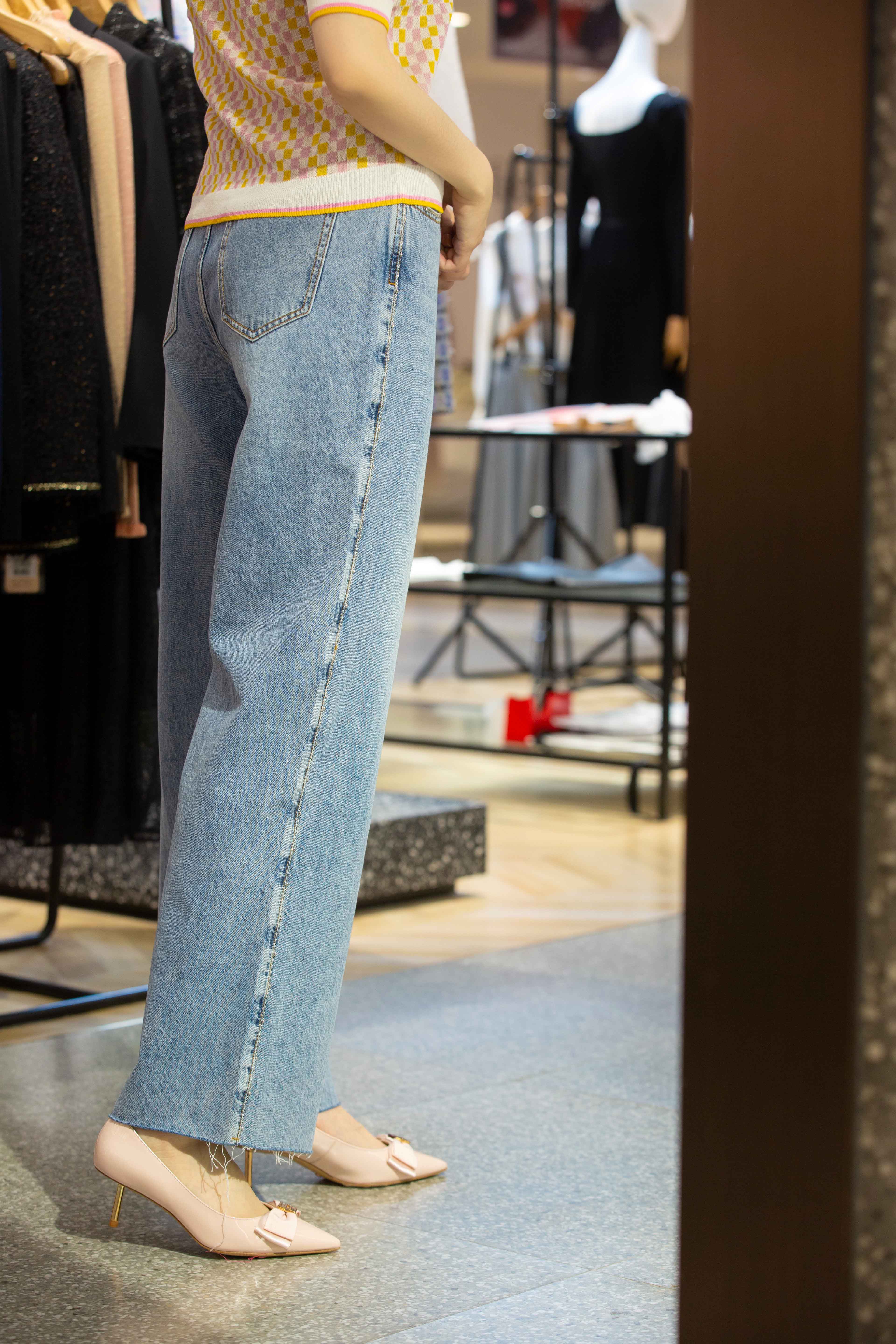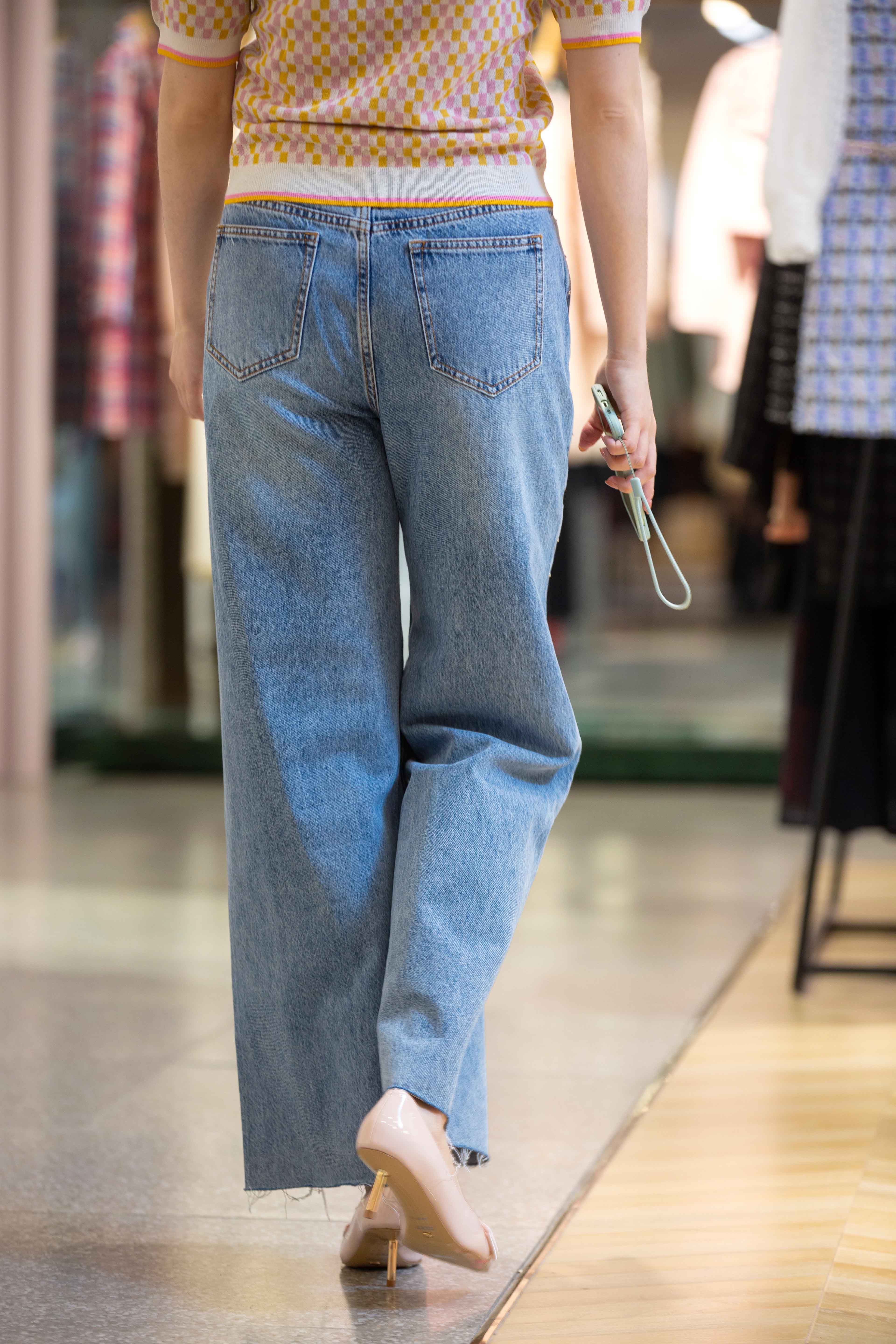 图3是更偏休闲,用格纹印花T恤搭配直筒牛仔裤,简单舒服,随性潇洒