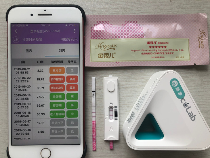 用的时候是测排卵试纸加设备一起的,试纸可以用大卫和秀儿,设备连接手机,结果出来后直接从手机APP上看排卵结果。