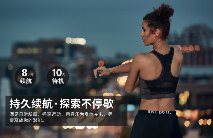 得益于我们最新的骨传导技术,Aeropex喇叭功耗降低,在体积减小的情况下Aeropex的标准使用时间提高到8小时,待机10天。