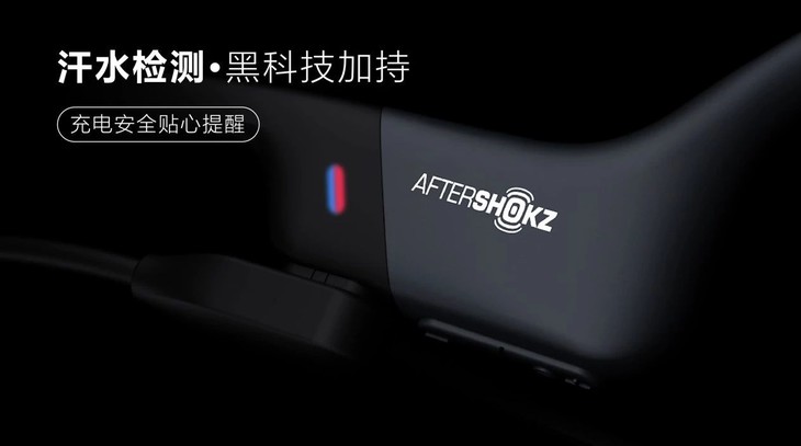 与此同时,Aeropex还带来了另一项黑科技:汗水检测技术。当充电口有汗水堆积,有短路风险时,Aeropex会通过亮灯、震动和声音贴心提示。让充电安全,使用更放心。