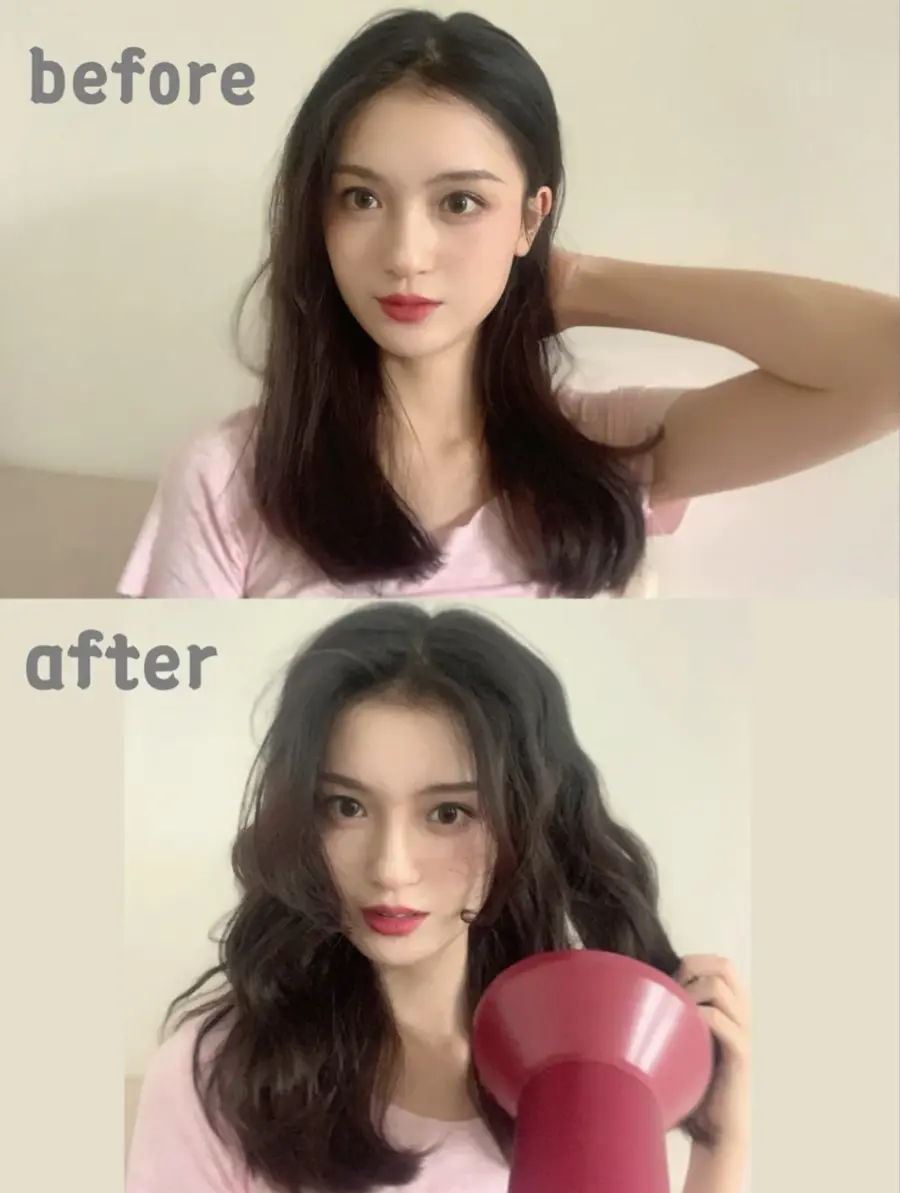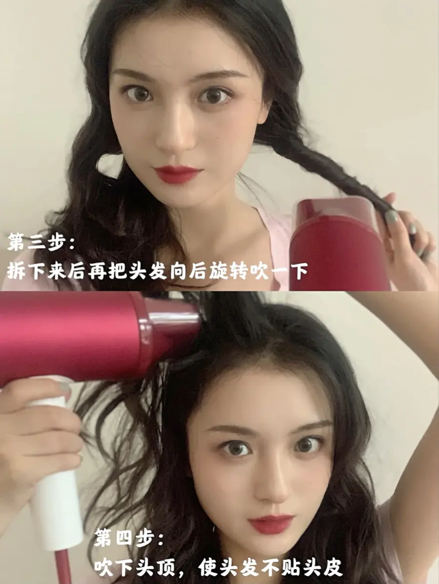 3️⃣拆下来后把头发向后旋吹一下,开启自然风模式,有助于头发定型
