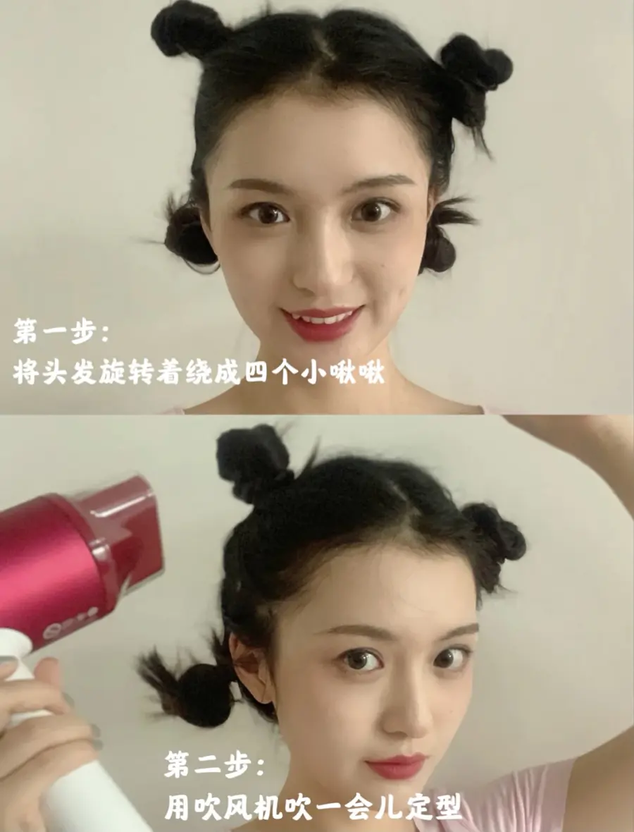 1️⃣先将头发绕成四个小揪揪(主要是扎紧点)