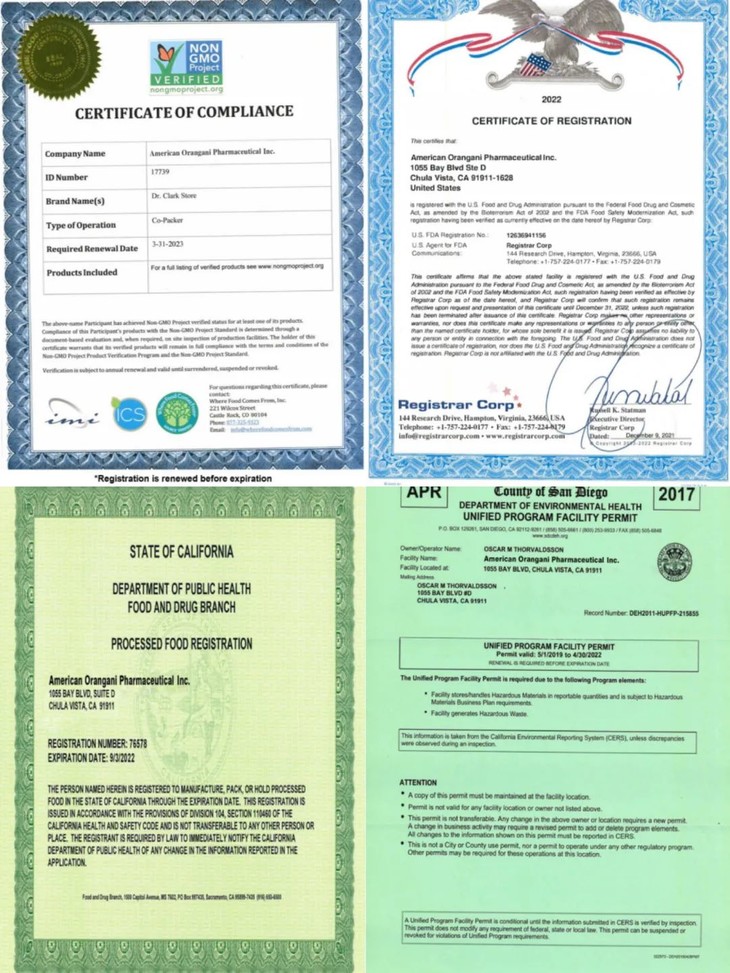 GMP、NSF、FDA、USDA ORGANIC、UL认证。