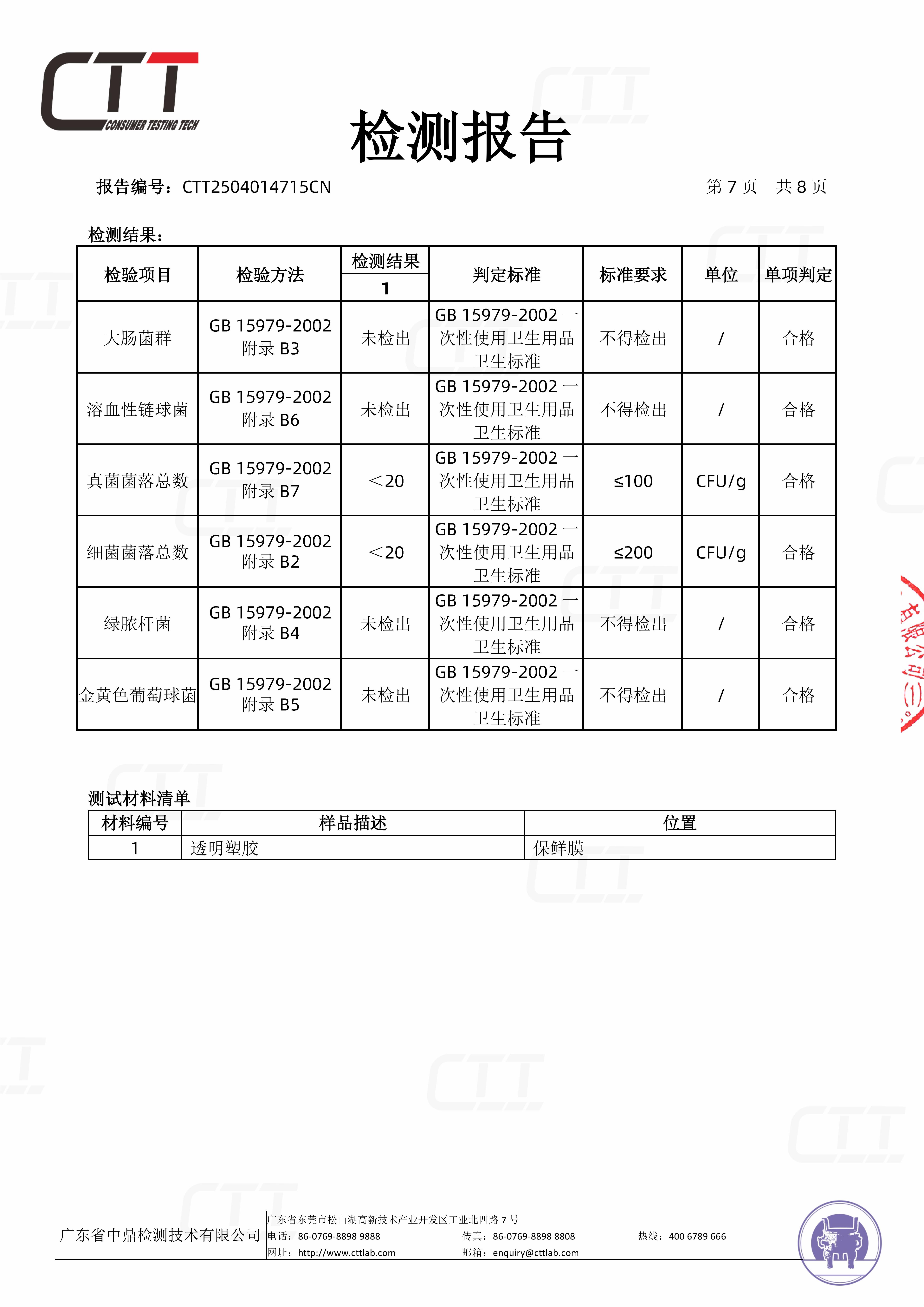 保鲜膜检测报告