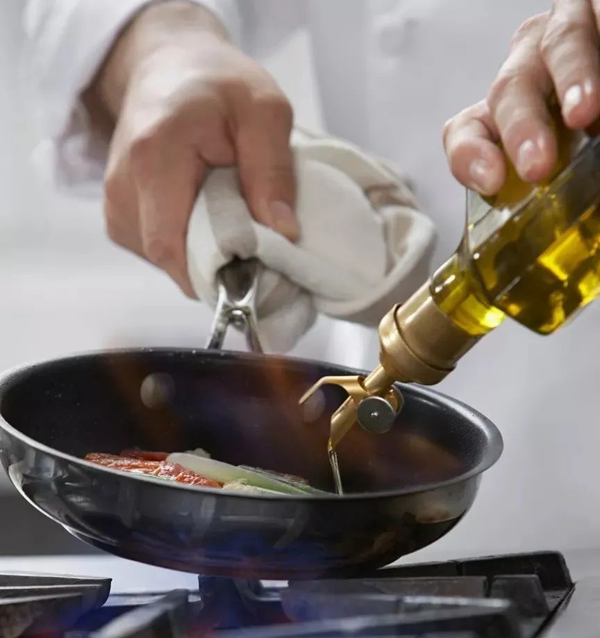 市面上的橄榄油,大部分是进口的初榨橄榄油(烟点190-210摄氏度),因为是初榨,保留的原物质比较多,所以烟点也相对低。橄榄油更适合沙拉凉拌用。四爷建议爷粉们可以直接用精炼葵花籽油(烟点是227摄氏度)、高油酸菜籽油(烟点为246摄氏度),它们烟点高、油烟少。
