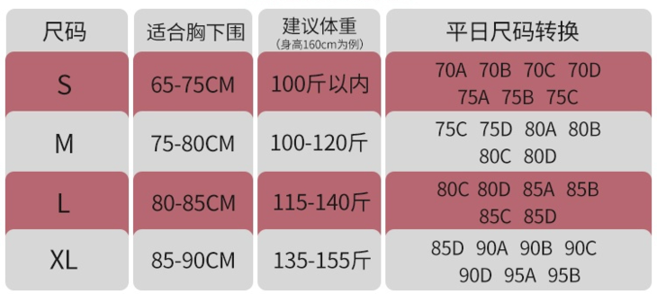 而且咱们这款有4个颜色,蓝色、粉色、黑色、豆沙紫色。共有S/M/L/XL四个码数,从A罩杯到D罩杯都可以穿着无忧。