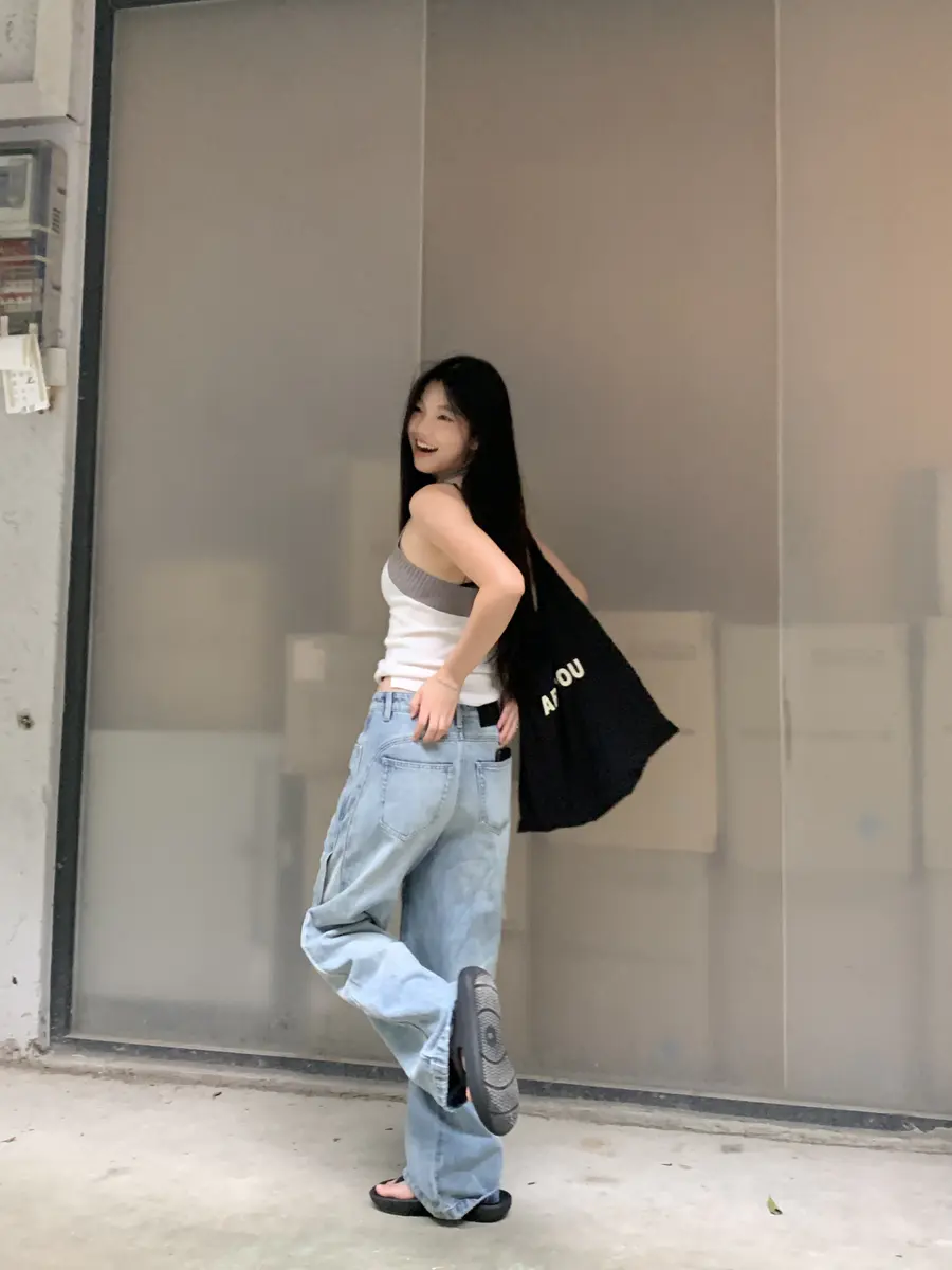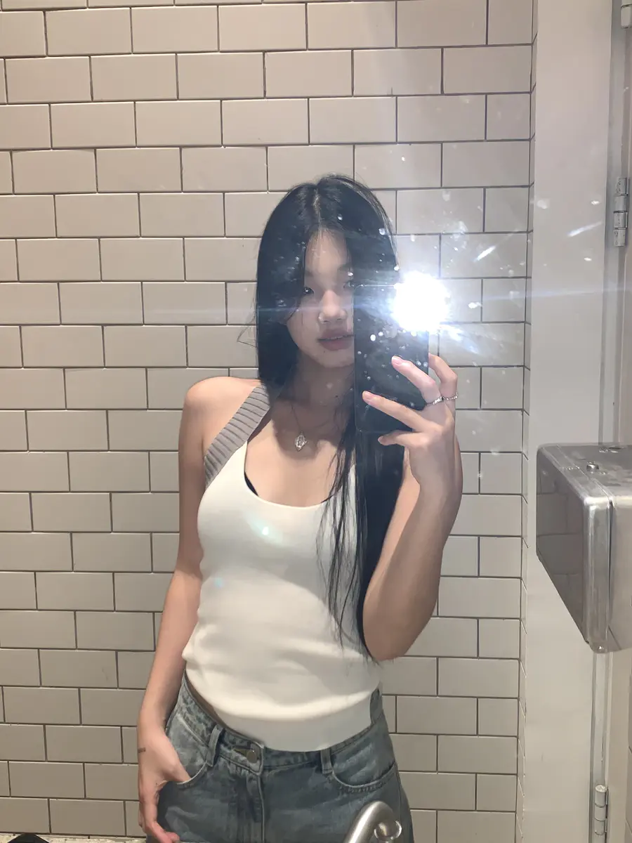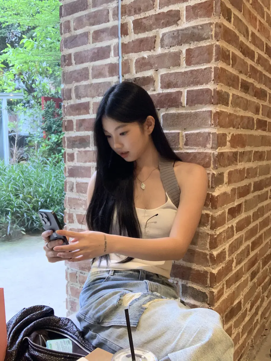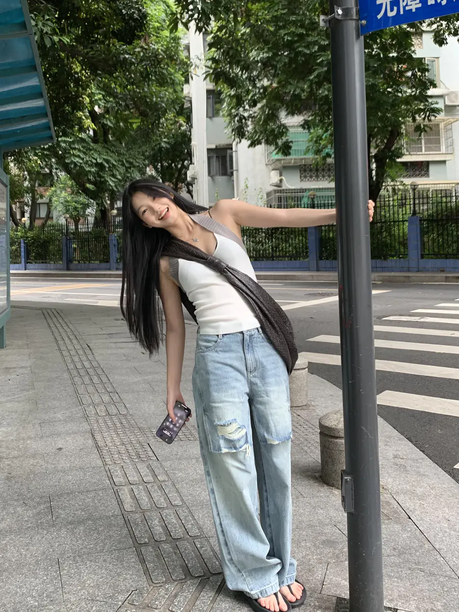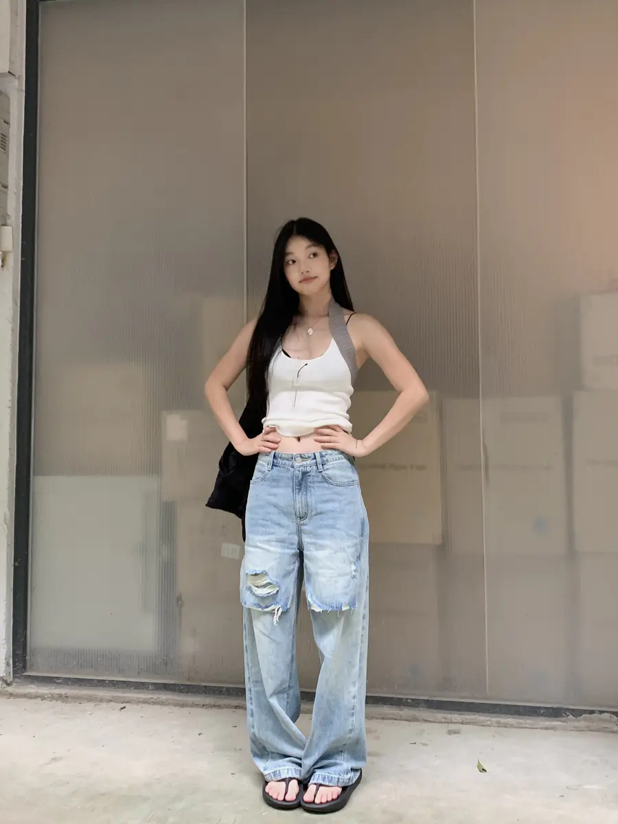 新品上身 | 挂脖背心搭配搭片牛仔裤真的很般配的一套💕