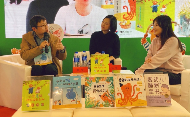 4月1日下午,北京师范大学文学院教授陈晖,浙江师范大学儿童文学专业副教授、儿童文学作家常立,百万粉丝母婴公众号“小土大橙子”的创立者小土大橙子做客北京图书订货会展区,以“婴幼儿图画书的创作和阅读”为主题进行了一场原创婴幼儿图画书的分享会。