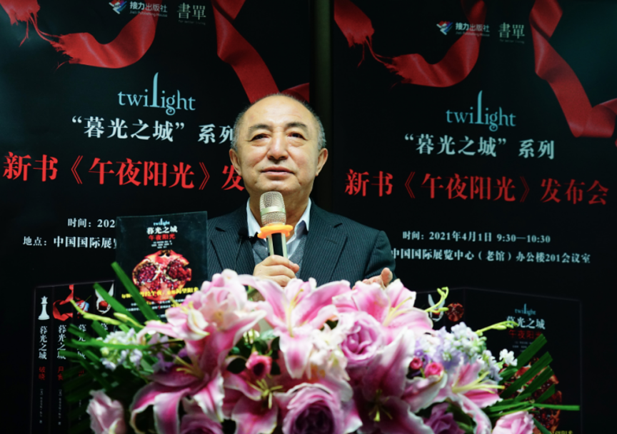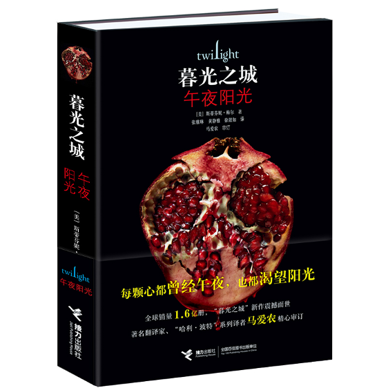 4月1日,“暮光之城”系列新书《午夜阳光》简体中文版在北京订货会上进行了新书发布仪式,翻译家、《午夜阳光》审订专家马爱农,导演、编剧、《青年电影手册》主编、金扫帚奖创办人程青松,编剧、青年作家、影评人、“暮光之城”粉丝代表张方等应邀出席并发表主题演讲。