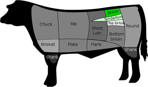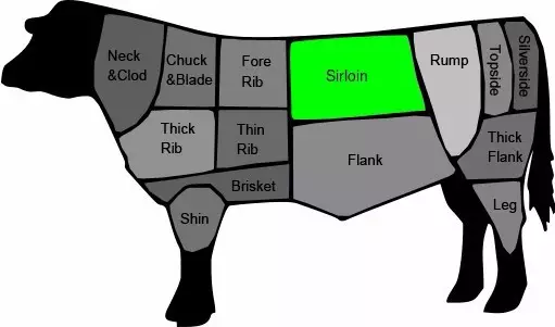 就其切割部位来说,英美两国略有差异。在美国,西冷指牛后腰脊柱两侧的肉。
