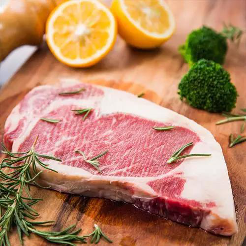 精选的西冷牛排呈长条形,红色肉的边缘带有一圈白色的油脂,这是精品西冷牛排最具辨识度的特征。