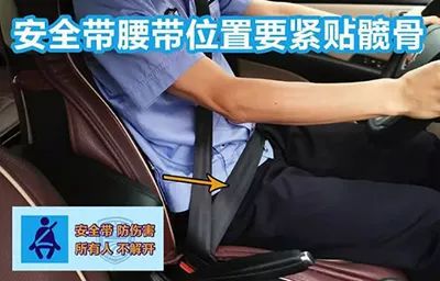 正确的系安全带方式,应该是系的尽可能低一些,系在髋部而不是腰部。