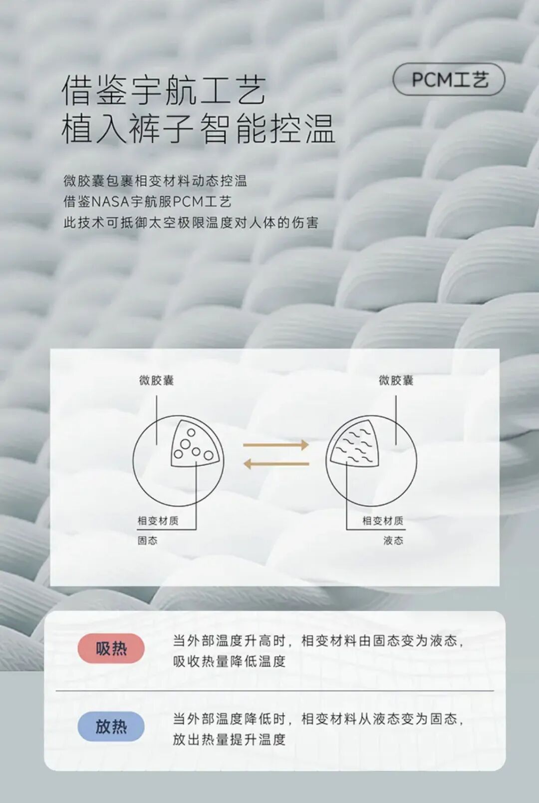 💡敲重点!和其他冰丝速干裤不同的是,梦惠妮这款裤子还用到了宇航黑科技,可以智能恒温调节体感温度。