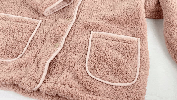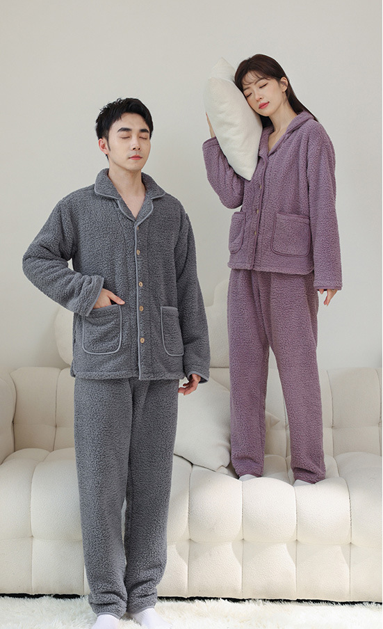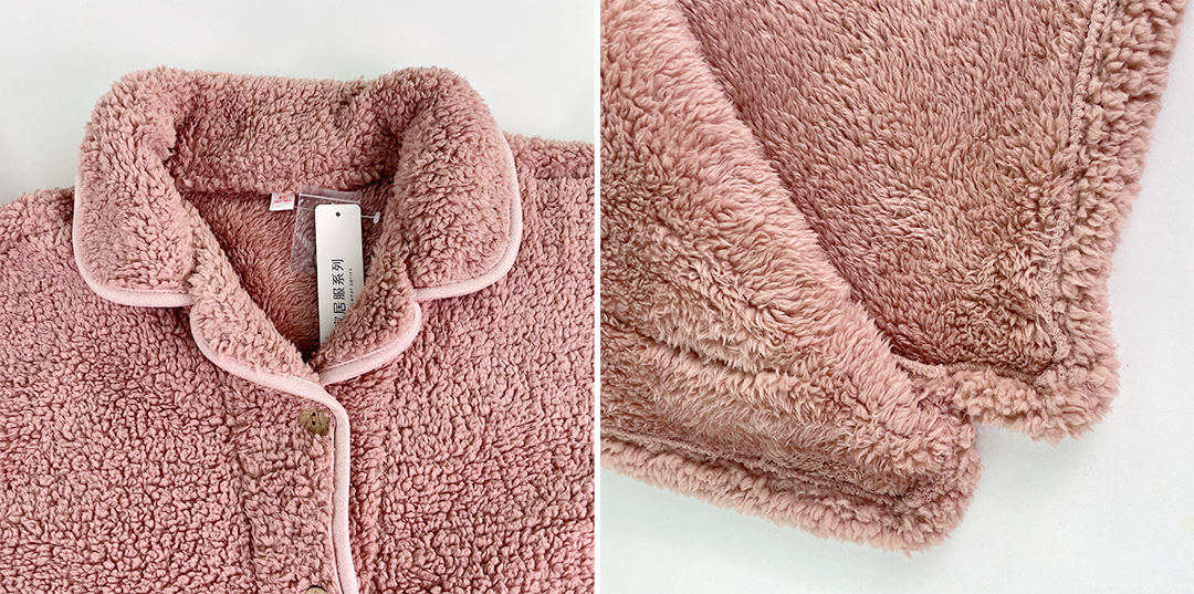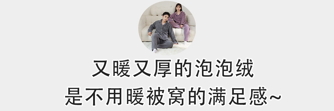 它和普通的珊瑚绒厚重臃肿不同,这套睡衣选用泡泡绒,绒毛密度更高,材质更紧密锁温有质感。